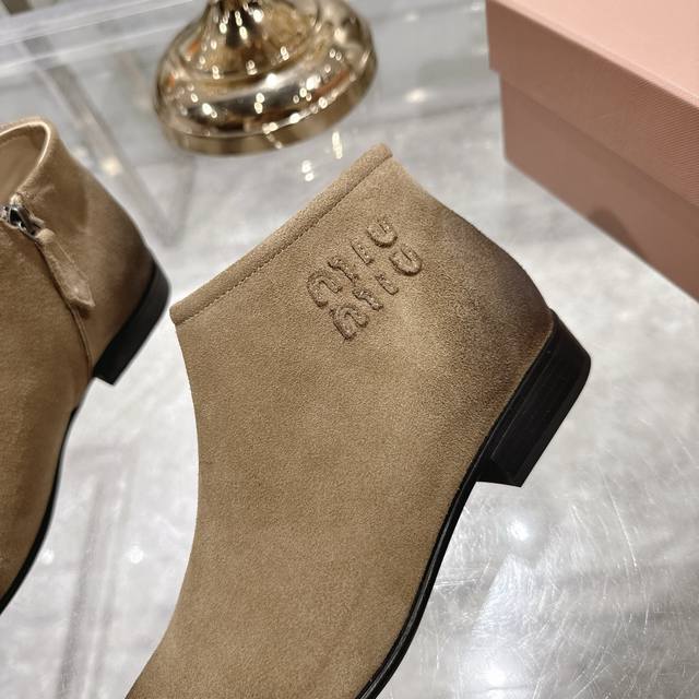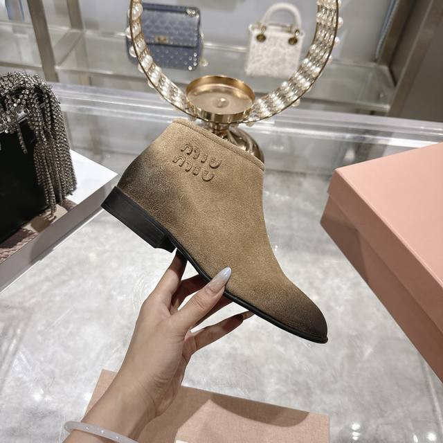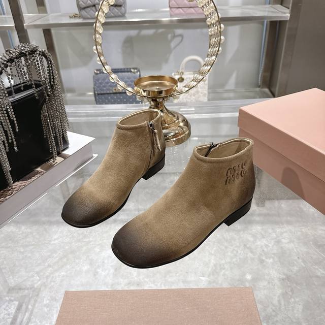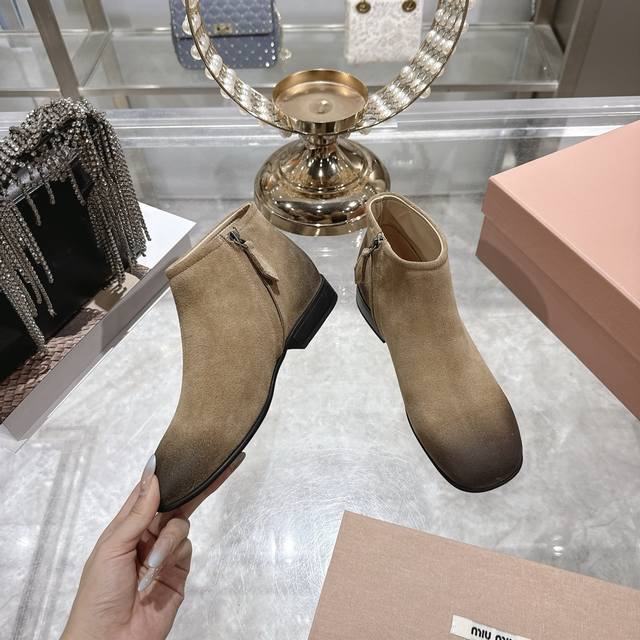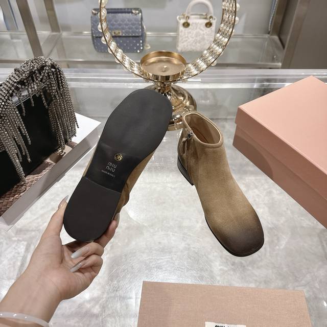 出厂价P 女装女鞋 运动原单 Miumiu 2025Ss秋冬新款圆头短靴 Miu系全球限量款靴子,今年最值得入手的靴子 重工艺手工鞋 复古擦色牛皮短靴 满满的复