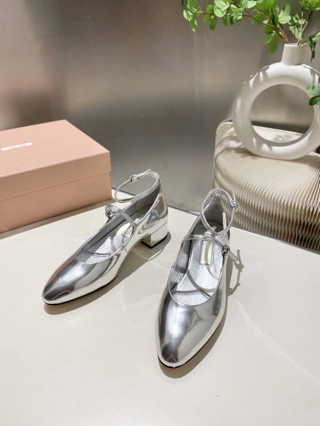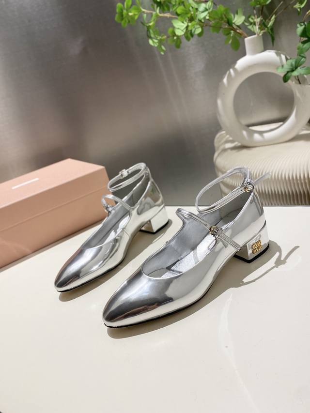 出厂价p 缪缪2025秋冬新款升级工艺打造精品,采用字母扣装饰 ,超级百搭 经典时尚款 对脚型没那么纤瘦,对高脚背的妹子更友好了鞋面:进口牛漆皮 内里:山羊皮里