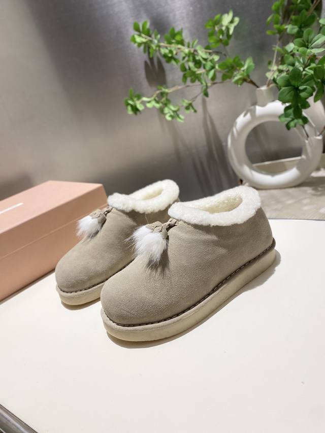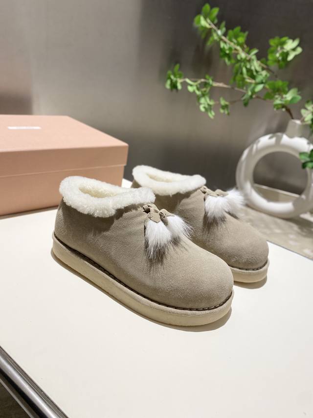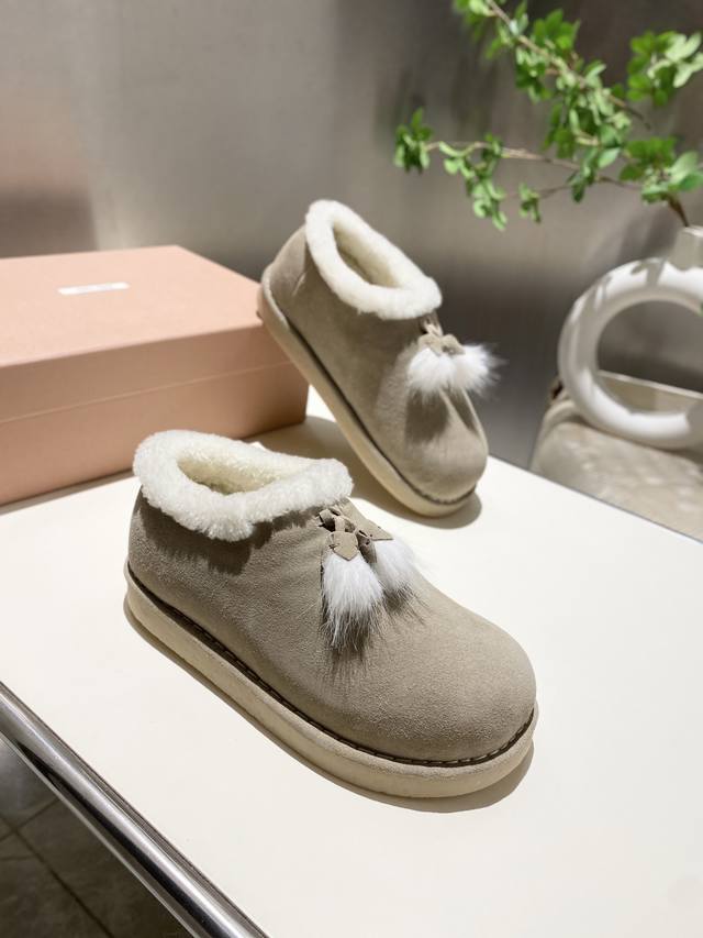 出厂价p 缪缪2025秋冬走秀新款雪地靴.今年最值得入手的靴子 没有之一!各大网红明星上脚 Miumiu今年 秋冬限定款 ,专柜非常难买 看着很硬的样子 其实非
