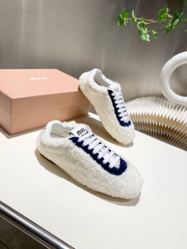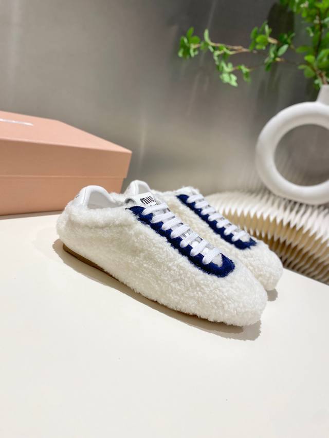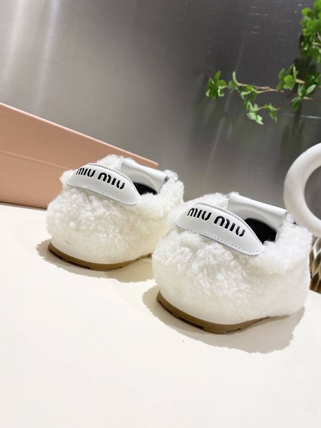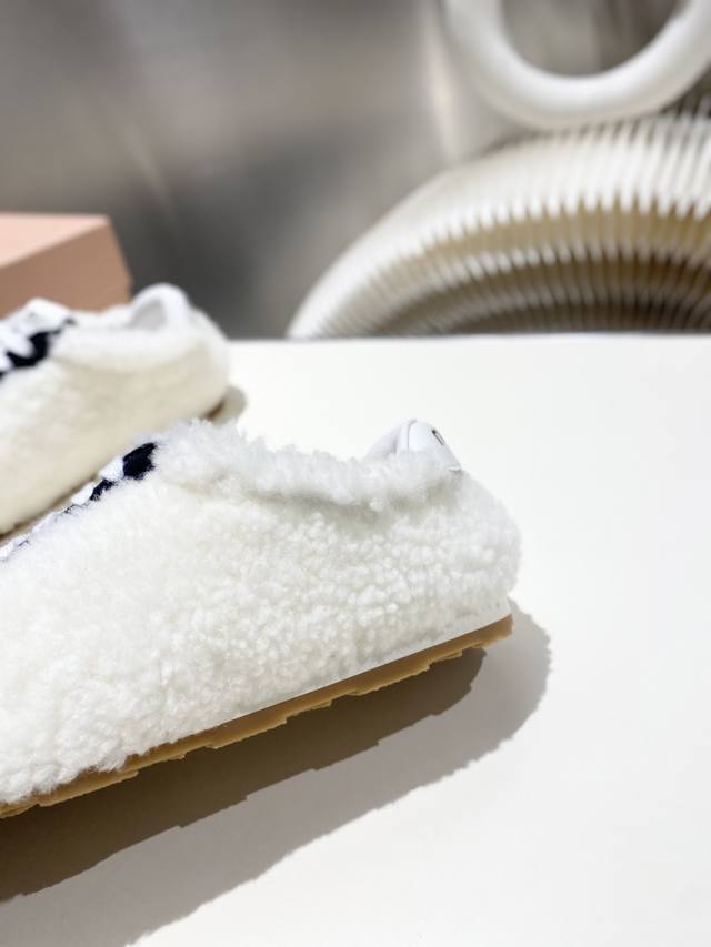 出厂价p 缪缪Miumiu2025新款 阿甘鞋 德训毛毛鞋 复古时尚 简约高级 随意搭配 上脚非常轻便舒适,鞋面原高丝光牛反绒羊高毛拼接. 内里羊皮,原板大底一比一开摸复刻,34-41 34.40.41定做不退不换 DDD