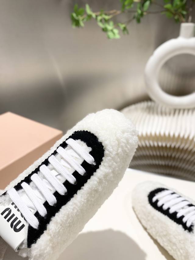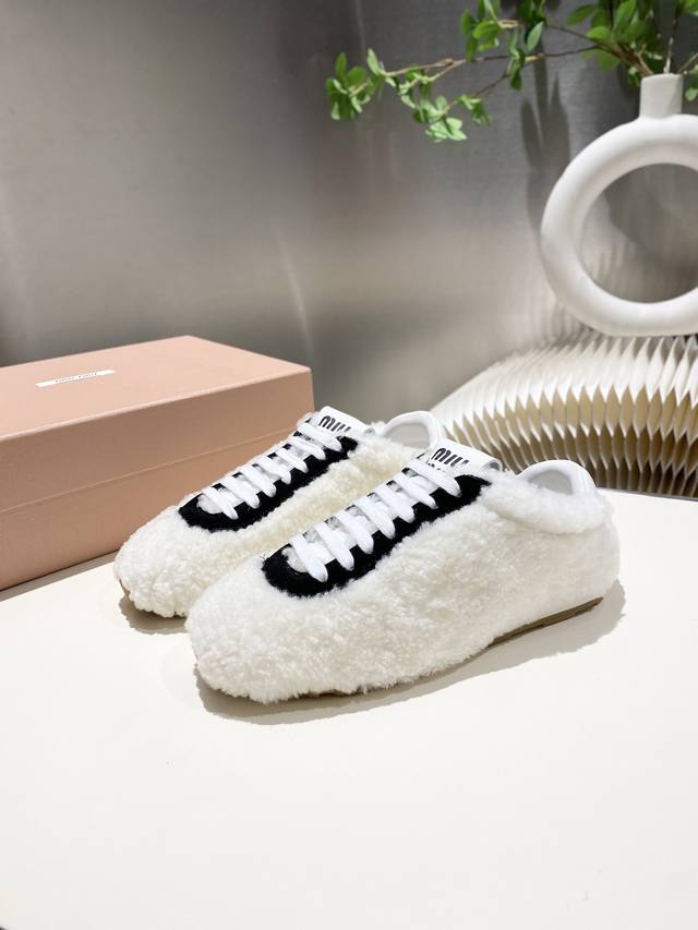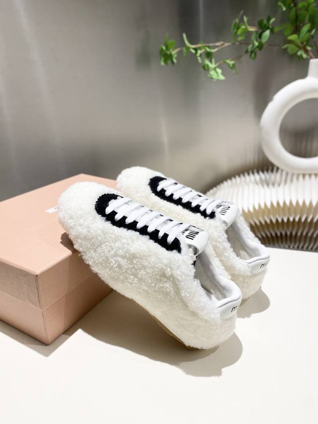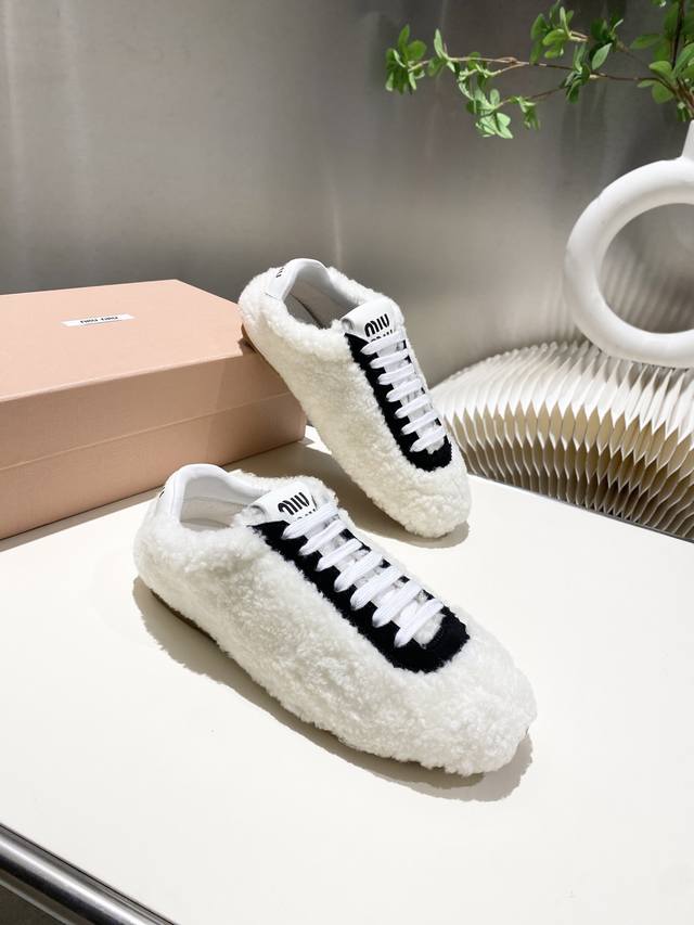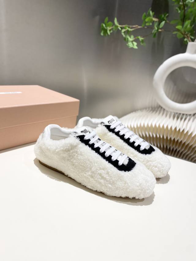出厂价p 缪缪Miumiu2025新款 阿甘鞋 德训毛毛鞋 复古时尚 简约高级 随意搭配 上脚非常轻便舒适,鞋面原高丝光牛反绒羊高毛拼接. 内里羊皮,原板大底一比一开摸复刻,34-41 34.40.41定做不退不换 DDD