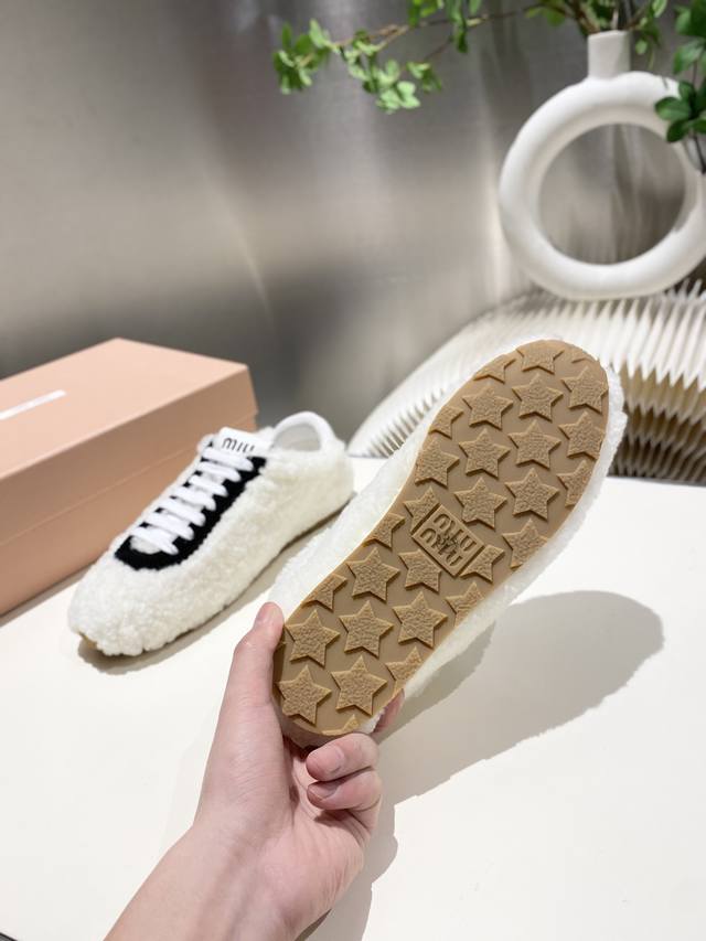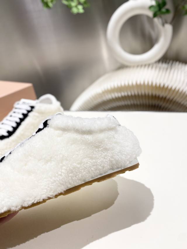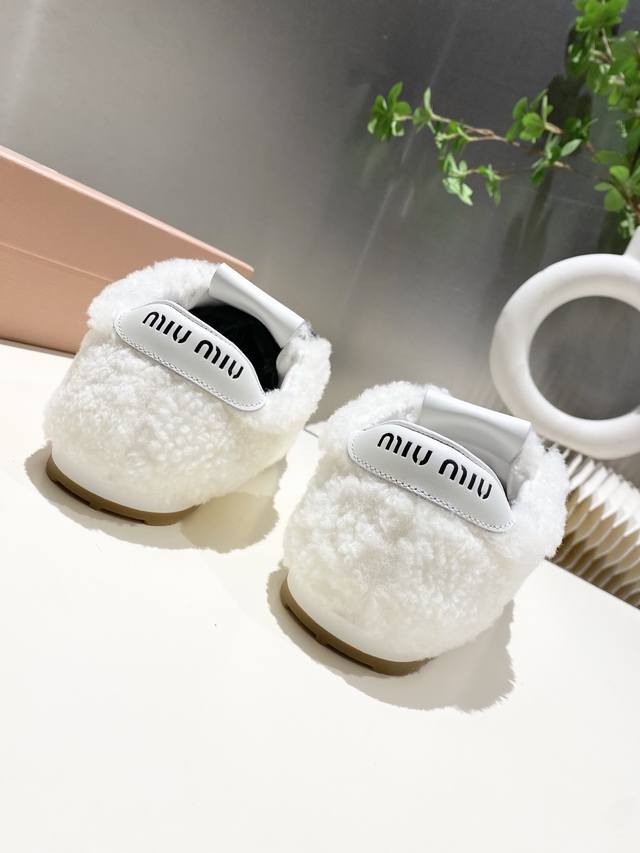 出厂价p 缪缪Miumiu2025新款 阿甘鞋 德训毛毛鞋 复古时尚 简约高级 随意搭配 上脚非常轻便舒适,鞋面原高丝光牛反绒羊高毛拼接. 内里羊皮,原板大底一