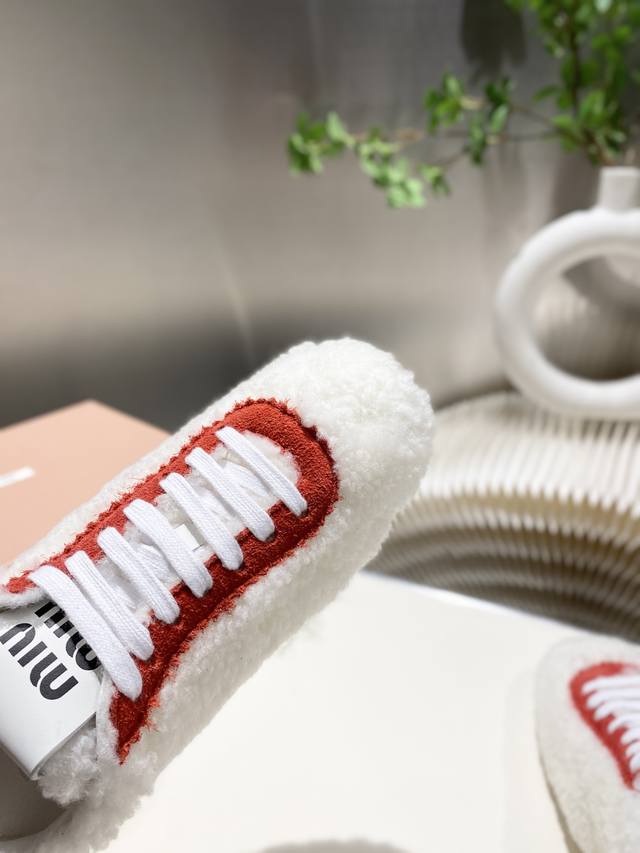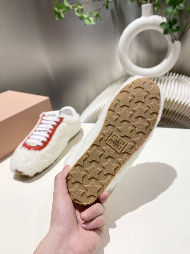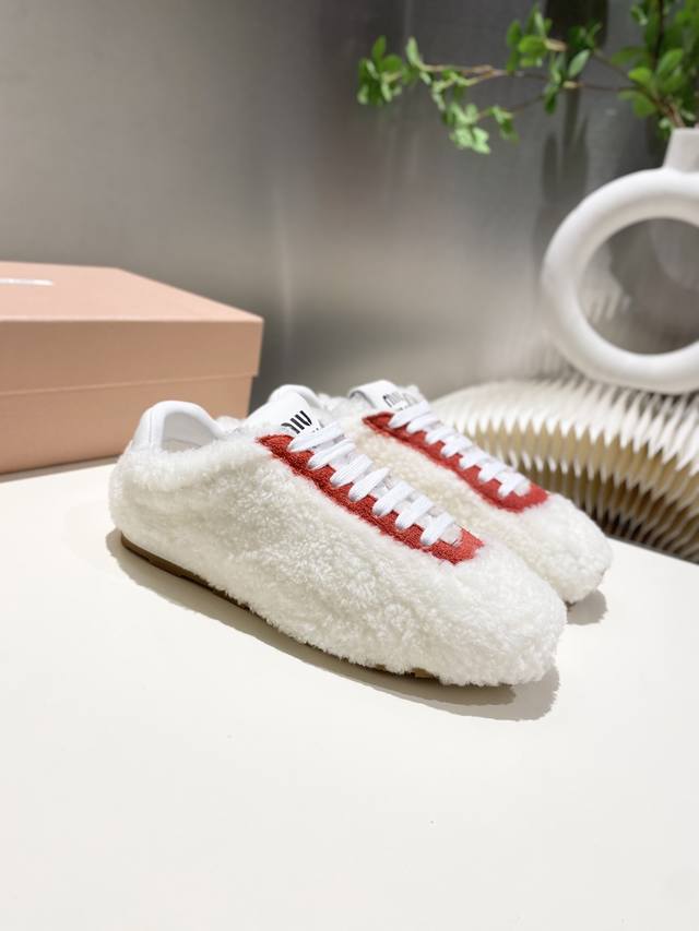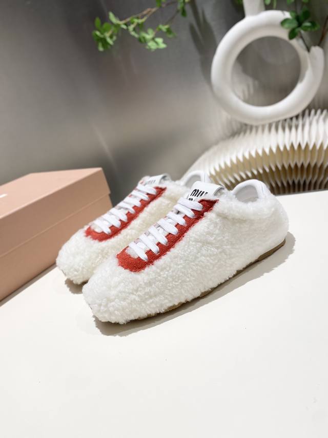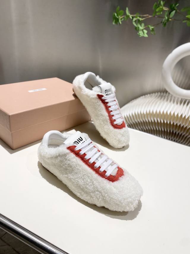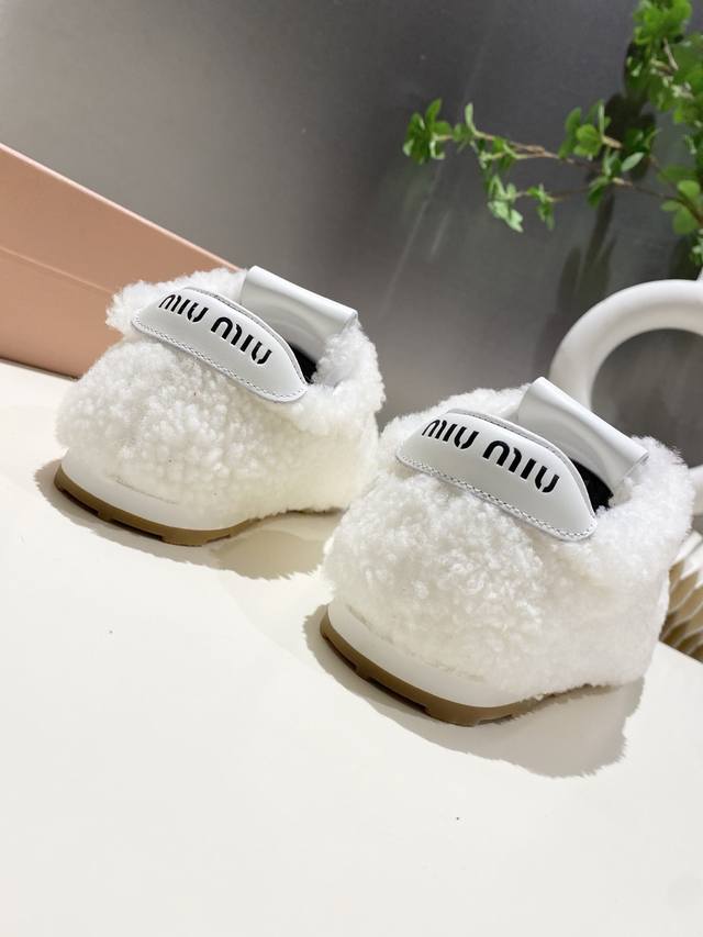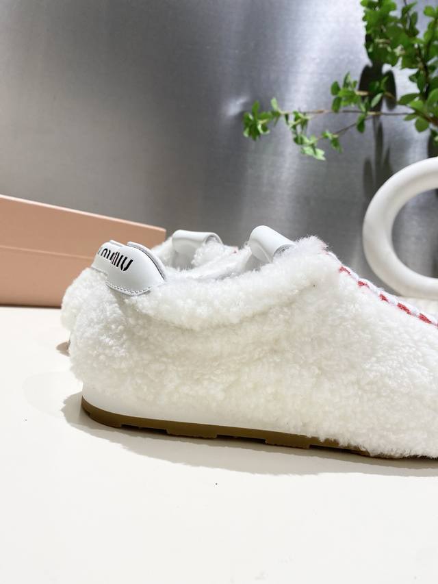 出厂价p 缪缪Miumiu2025新款 阿甘鞋 德训毛毛鞋 复古时尚 简约高级 随意搭配 上脚非常轻便舒适,鞋面原高丝光牛反绒羊高毛拼接. 内里羊皮,原板大底一