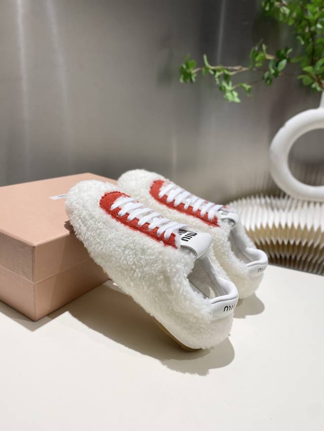 出厂价p 缪缪Miumiu2025新款 阿甘鞋 德训毛毛鞋 复古时尚 简约高级 随意搭配 上脚非常轻便舒适,鞋面原高丝光牛反绒羊高毛拼接. 内里羊皮,原板大底一比一开摸复刻,34-41 34.40.41定做不退不换 DDD