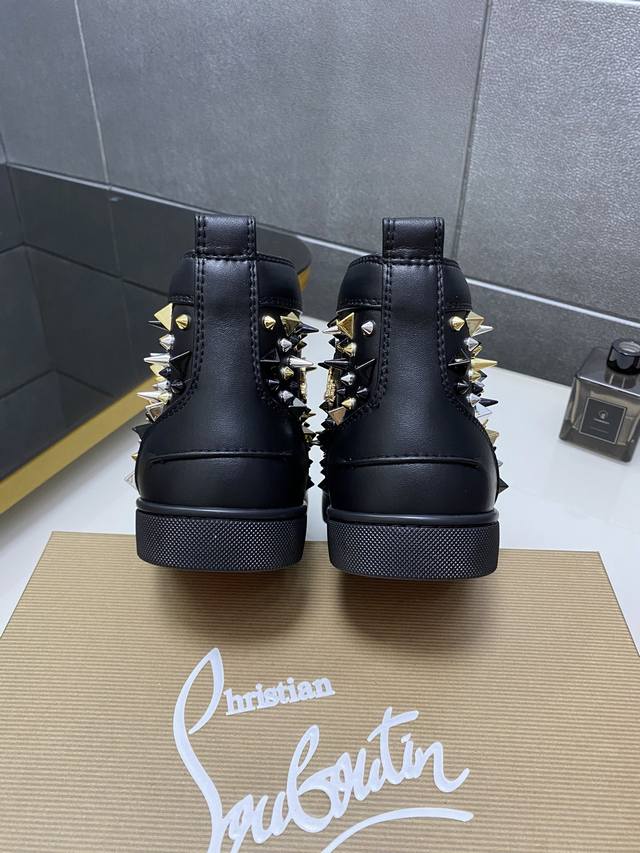 出厂价p 订做款 情侣款 。Christian Louboutin Cl红底鞋 专柜烫钻柳钉系列,情侣休闲板鞋 独家热款发布活动乳胶垫脚成品大底车线 女35-4