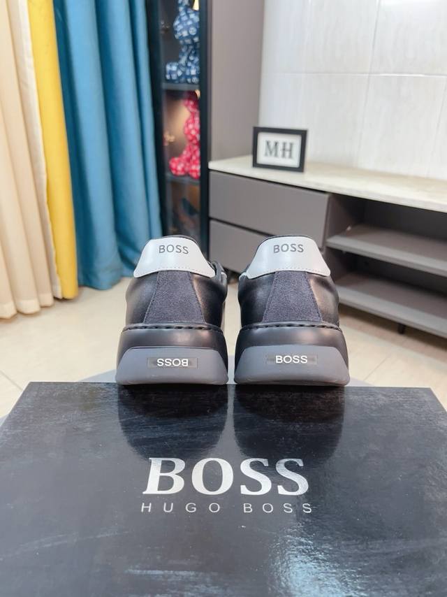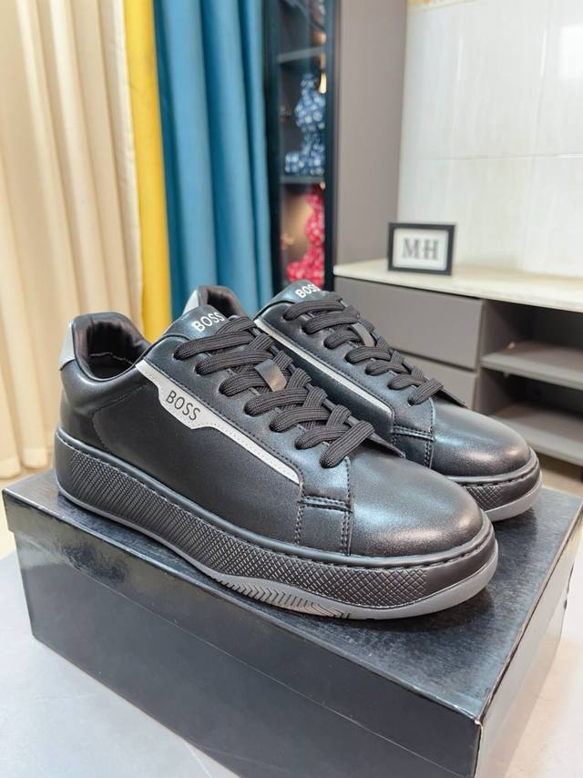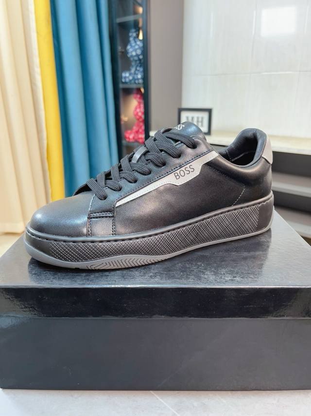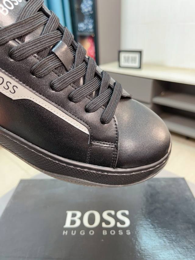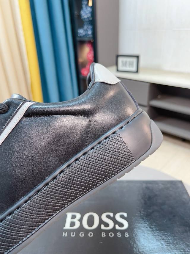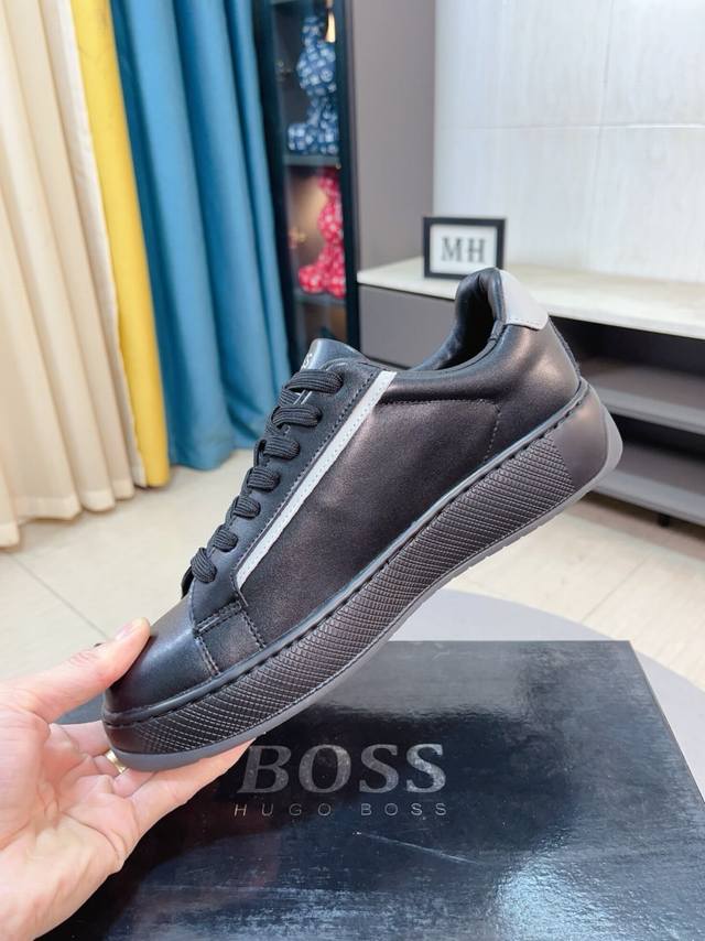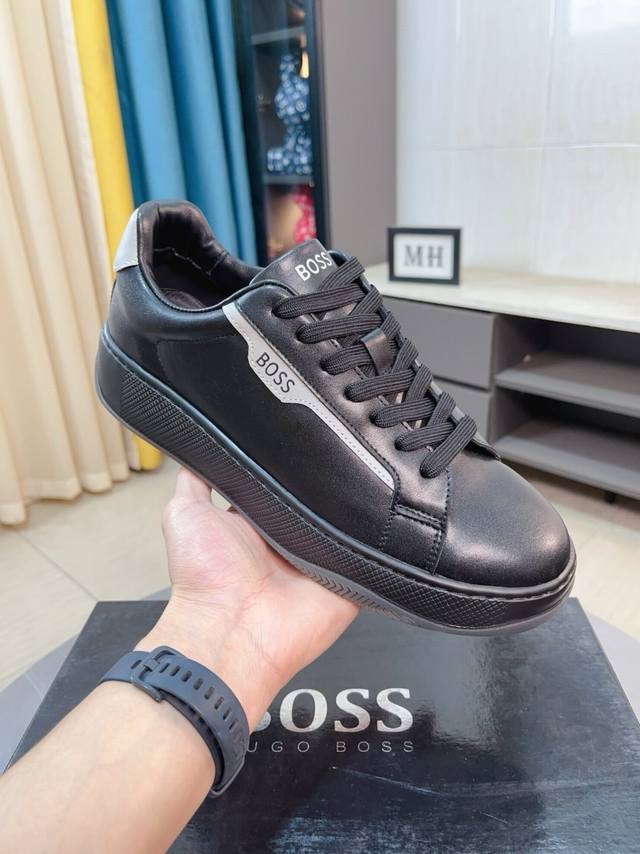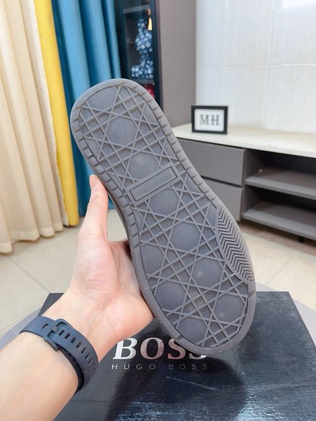 调工厂p价 男装男鞋 运动原单 Boss 2025最新品超级有范儿的一款休闲鞋 精选头层小牛皮刺绣Logo...