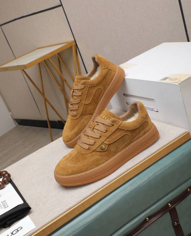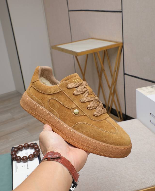 / 出厂价p Iuggi 新款复古老花男鞋 休闲百搭 高级感满满 时尚轻奢个性款 联名款 复古老花因素 帅气范儿十足 头层绒面牛皮 内里羊毛 鞋底橡胶大底 轻便又防