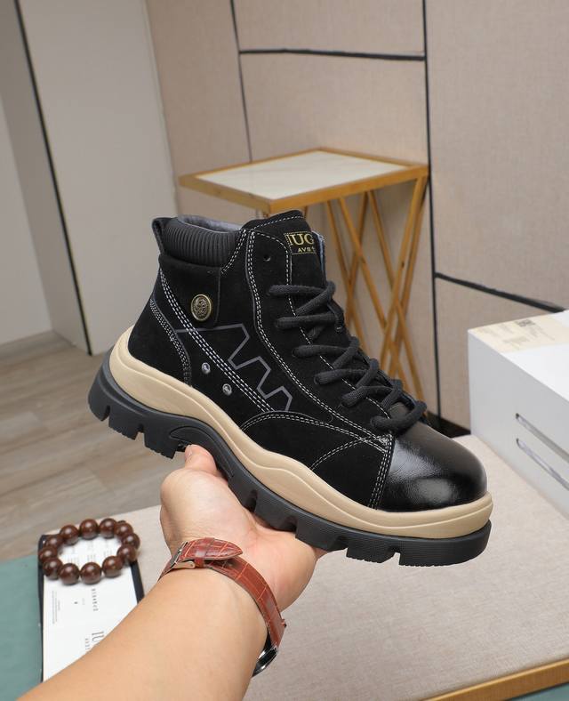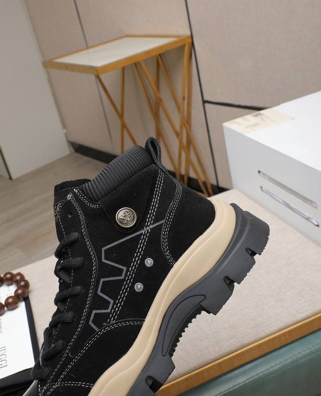 / 出厂价p Iuggi 新款复古老花男鞋 休闲百搭 高级感满满 时尚轻奢个性款 联名款 复古老花因素 帅气范儿十足 头层绒面牛皮 内里羊毛 鞋底橡胶大底 轻便又防
