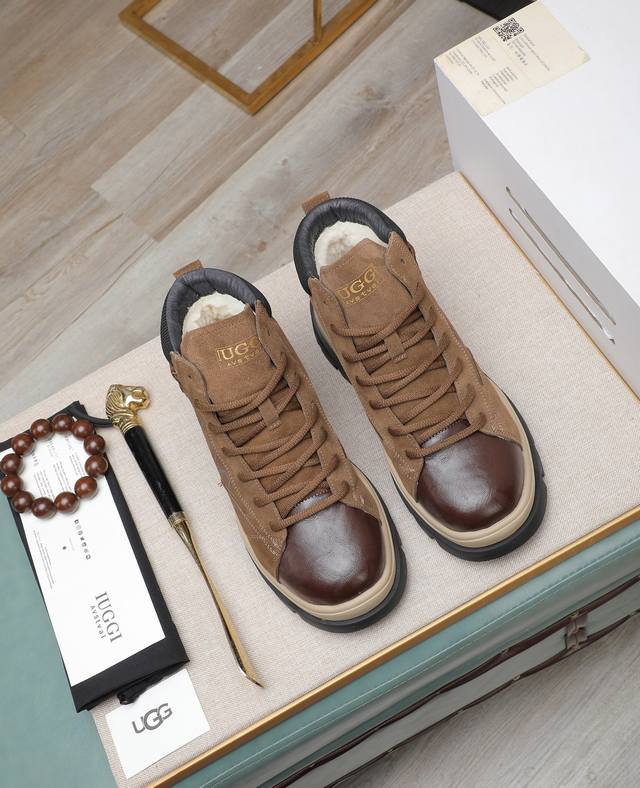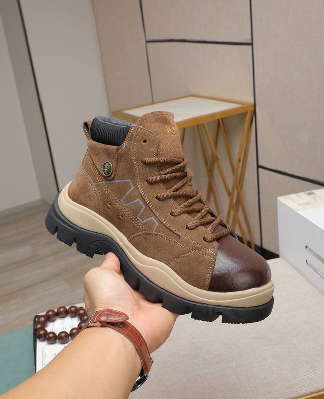 / 出厂价p Iuggi 新款复古老花男鞋 休闲百搭 高级感满满 时尚轻奢个性款 联名款 复古老花因素 帅气范儿十足 头层绒面牛皮 内里羊毛 鞋底橡胶大底 轻便又防