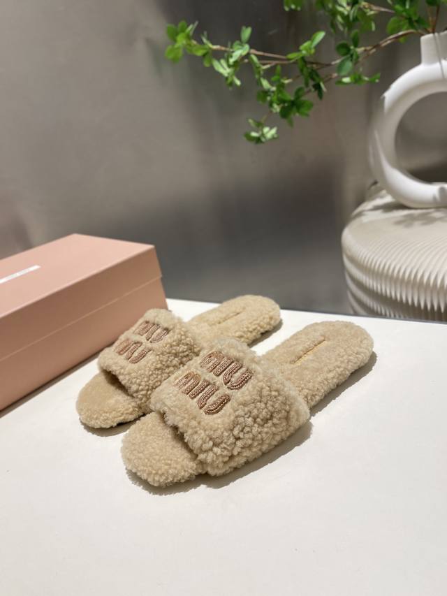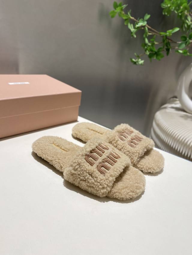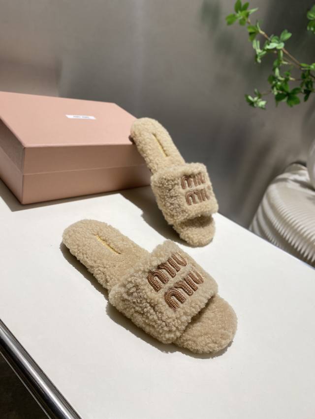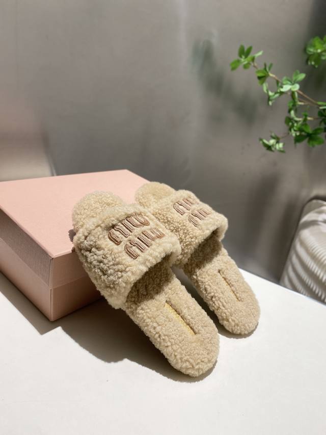 / 出厂价p Miumiu顶级版本 2025秋冬潮品毛毛拖 !1:1开模秒杀市场一切版本 欧美名媛 明星 网红Girl 大爱款 ,冰岛进口羊毛 单色羊毛蓬松柔软 亲