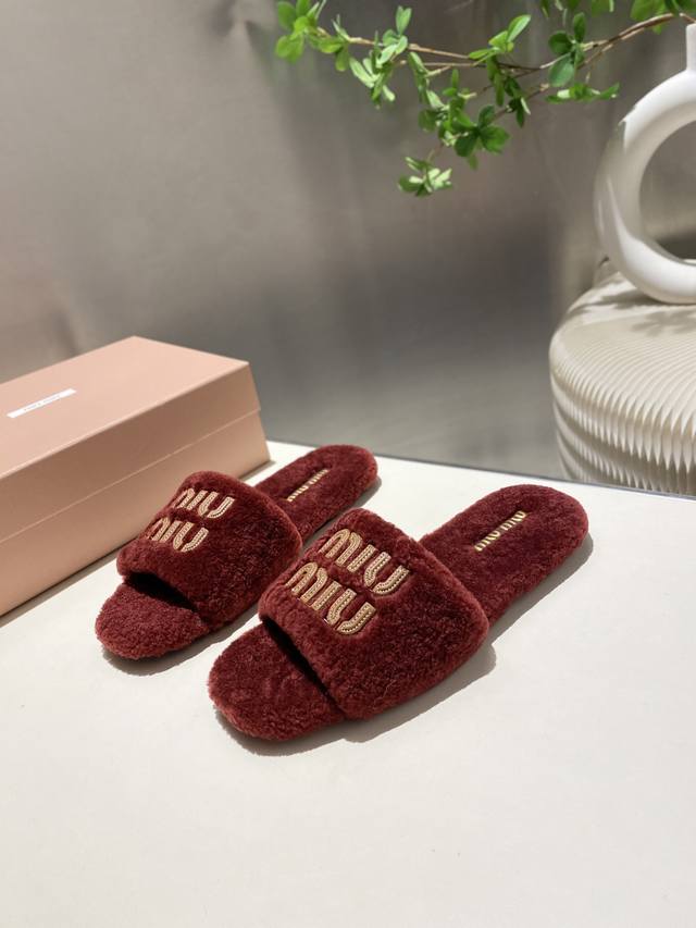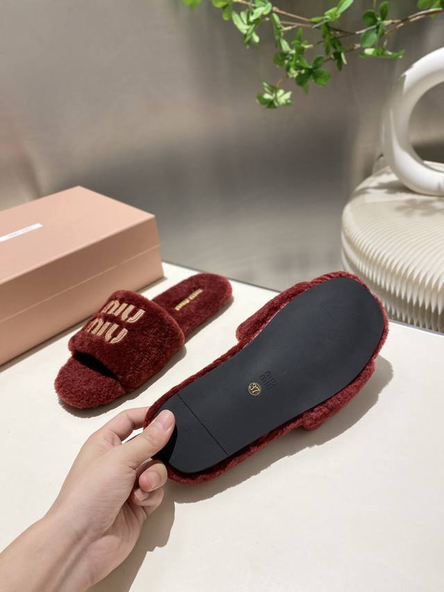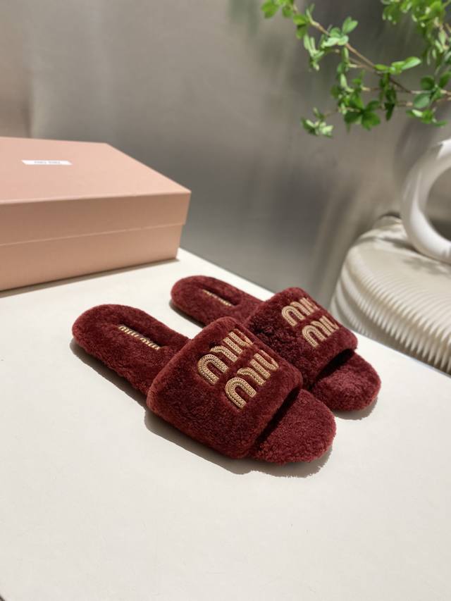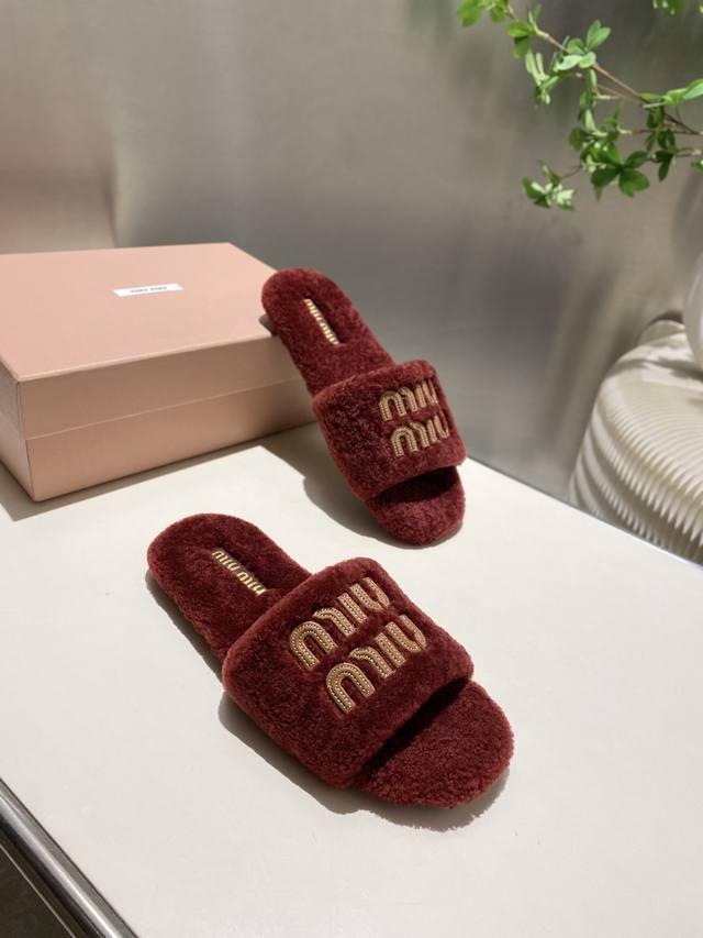 / 出厂价p Miumiu顶级版本 2025秋冬潮品毛毛拖 !1:1开模秒杀市场一切版本 欧美名媛 明星 网红Girl 大爱款 ,冰岛进口羊毛 单色羊毛蓬松柔软 亲