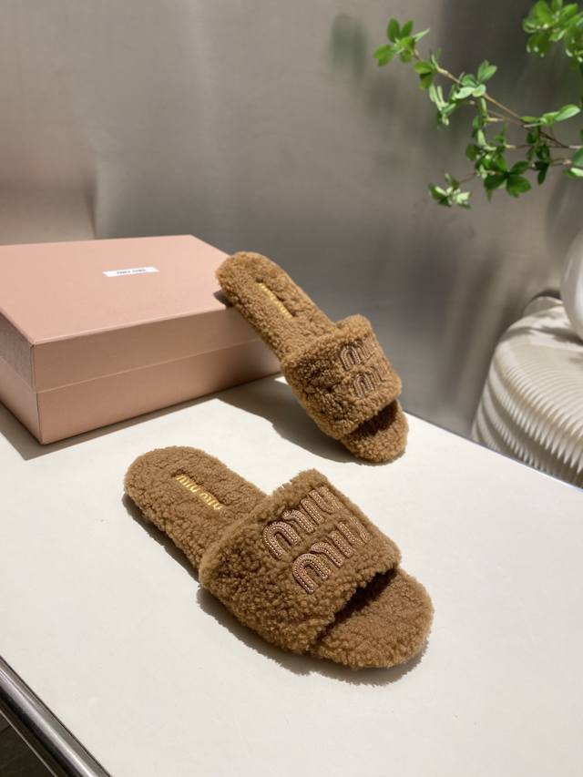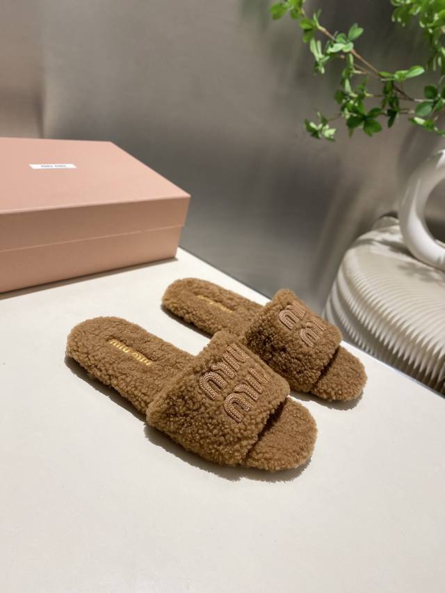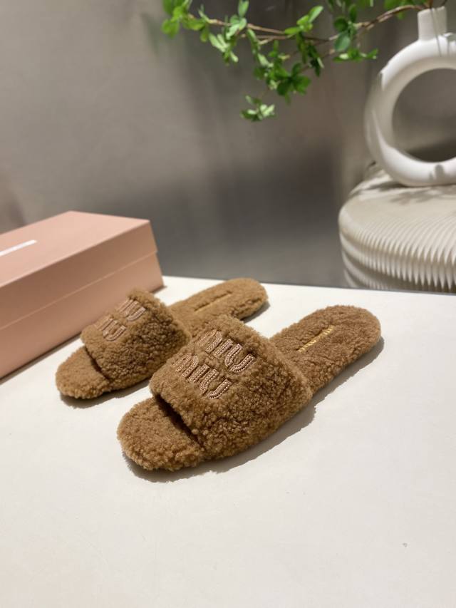 / 出厂价p Miumiu顶级版本 2025秋冬潮品毛毛拖 !1:1开模秒杀市场一切版本 欧美名媛 明星 网红Girl 大爱款 ,冰岛进口羊毛 单色羊毛蓬松柔软 亲