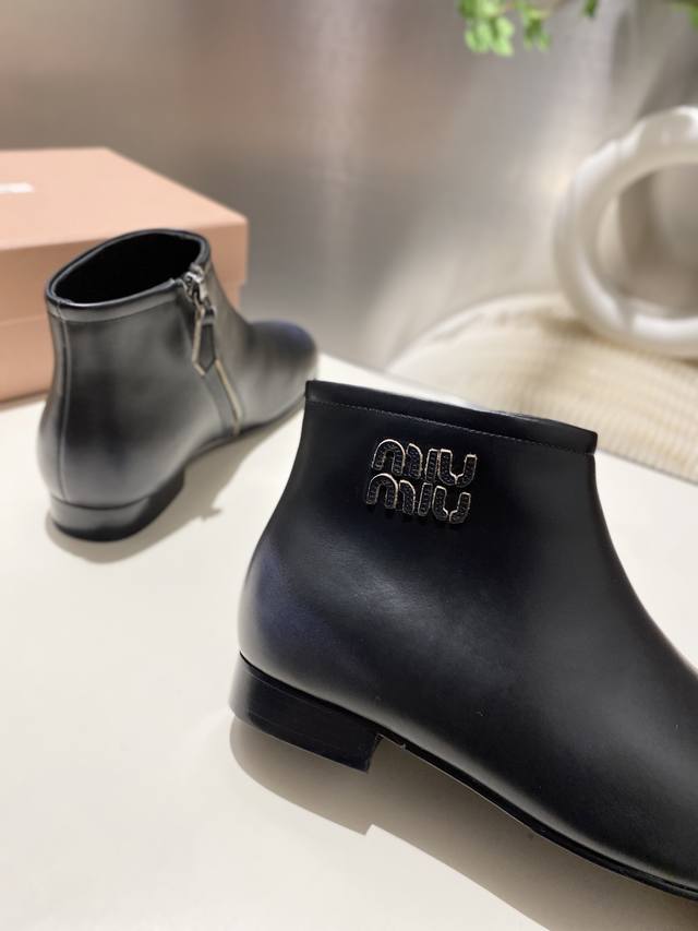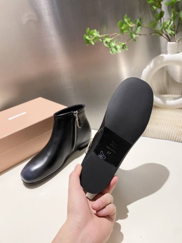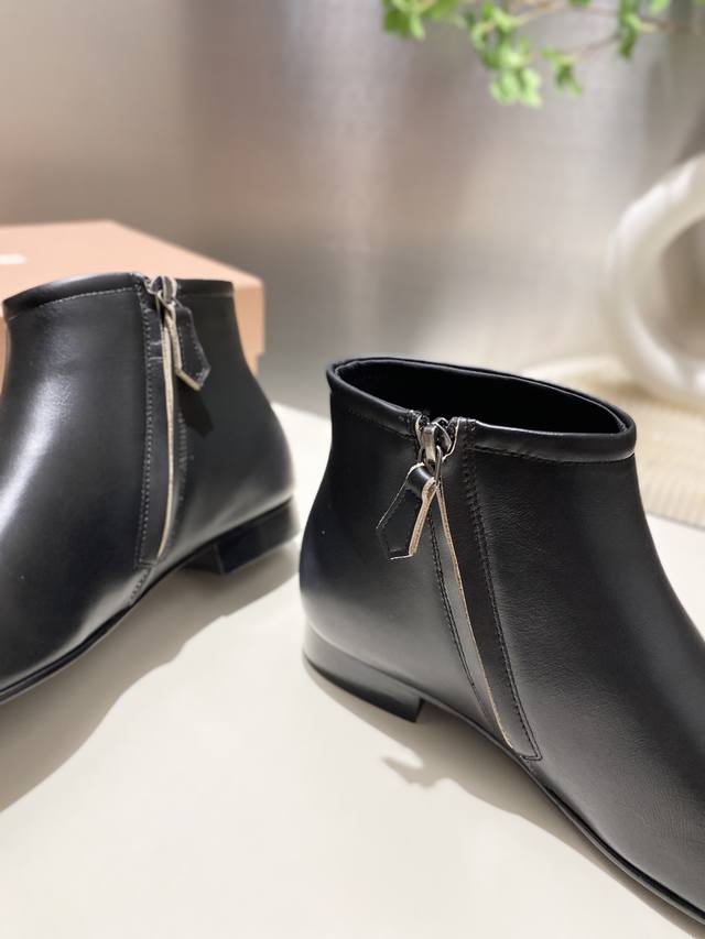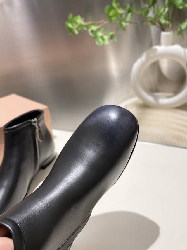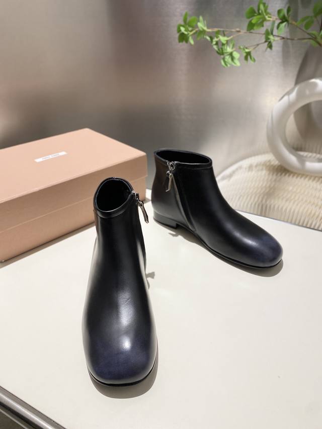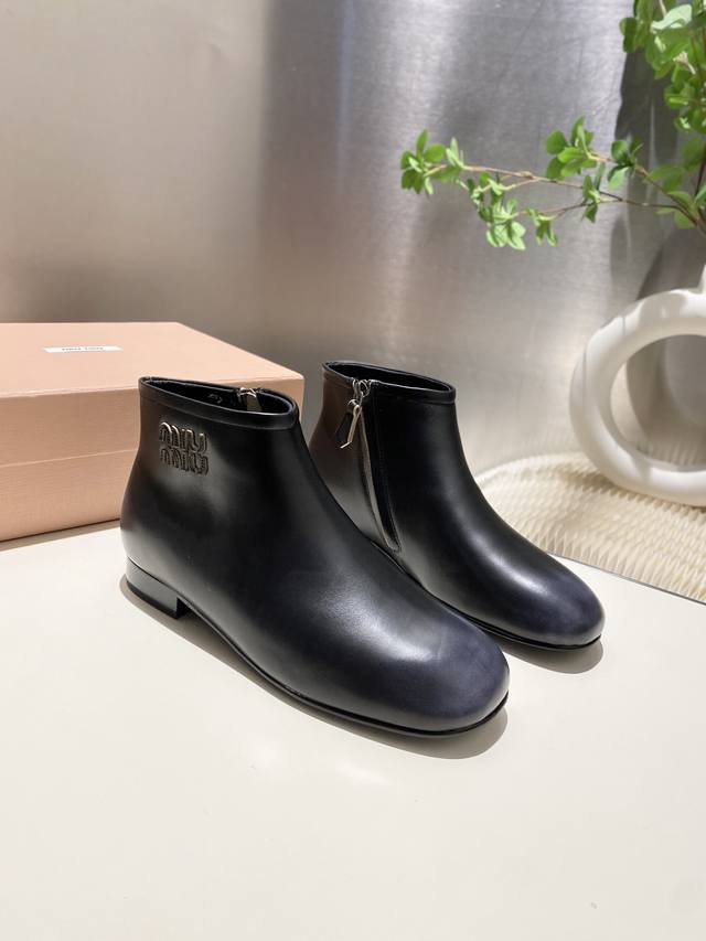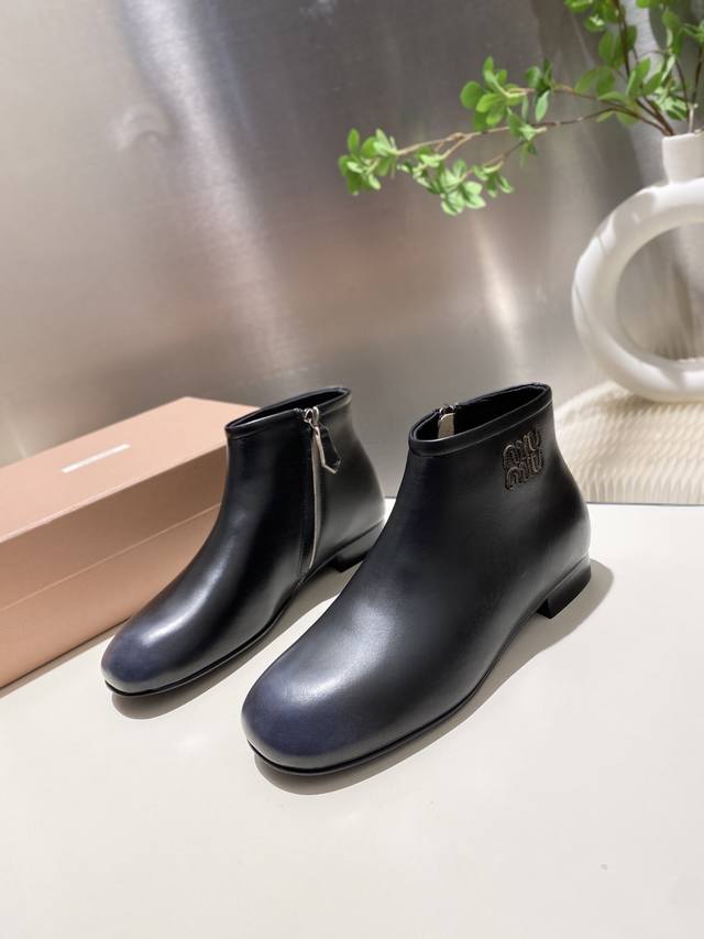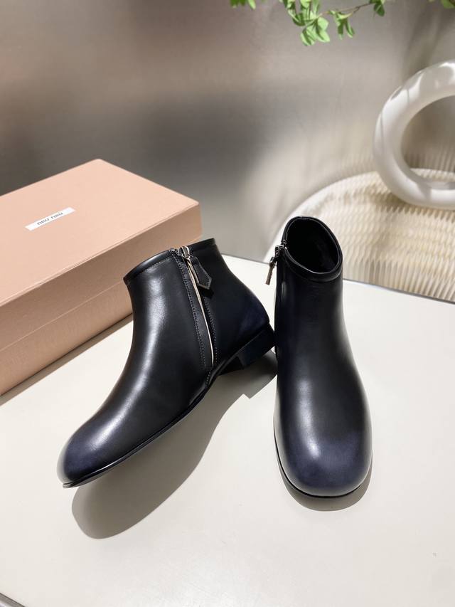 出厂价p Miumiu 2025秋冬新款圆头短靴 今年最值得入手的靴子 重工艺手工鞋 复古擦色牛皮短靴.满满的复古感! 整个皮料选用进口小牛皮 皮质高级柔软细腻