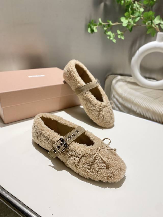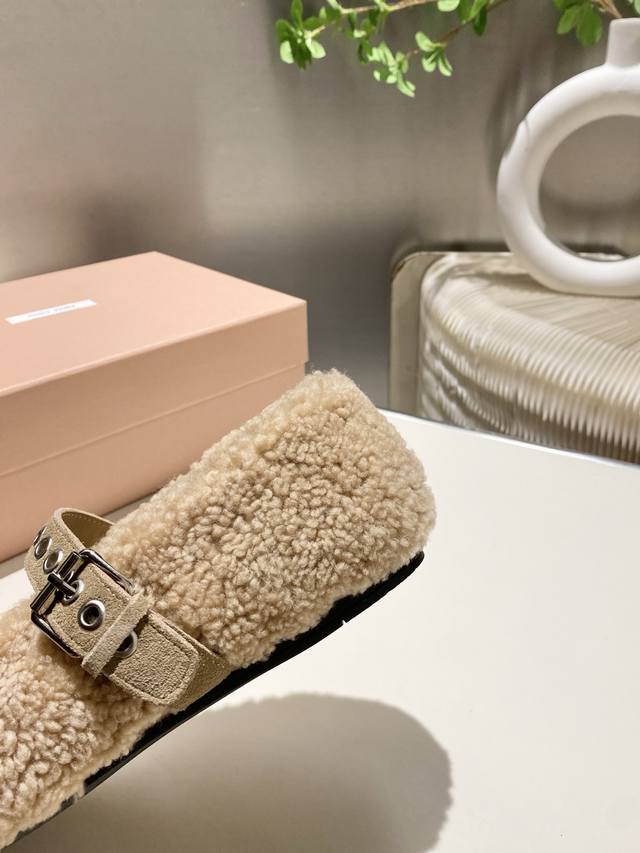 / 出厂价pp皮的 缪缪2025秋冬新款毛毛鞋打,采用字母扣装饰 ,超级百搭 经典时尚款 对脚型没那么纤瘦,对高脚背的妹子更友好了鞋面:进口羊毛 内里:山羊皮里,大