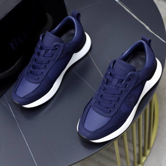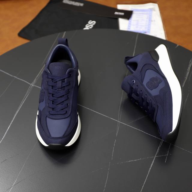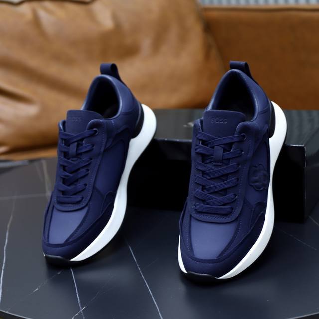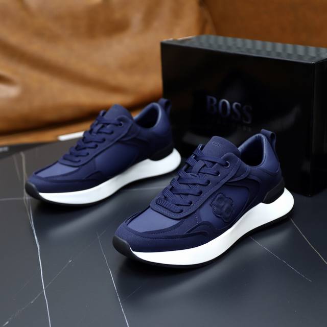 / 出厂价Pp: 品牌:Boss 标准码:39-45 等级:官网同款 材料:原厂牛皮拼接舒适透气内里轻便耐磨运动大底 款式类别:男士时尚休闲鞋 跑步 运动鞋 尊贵奢