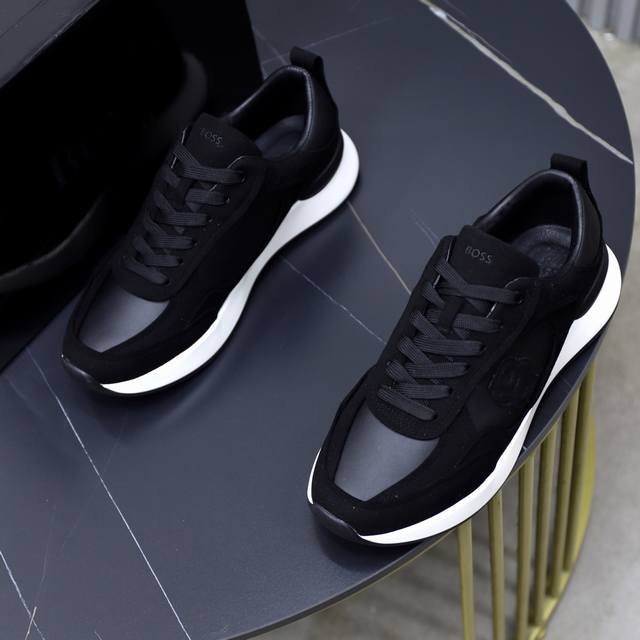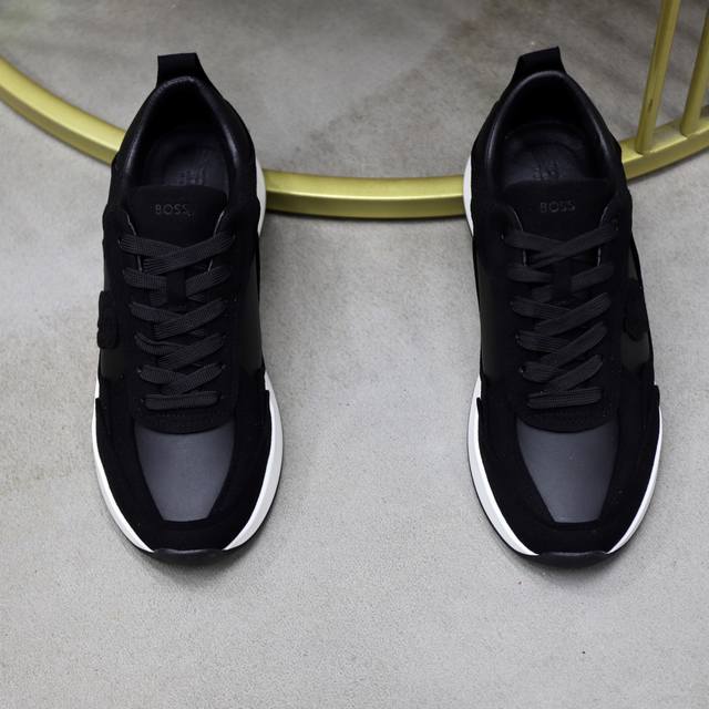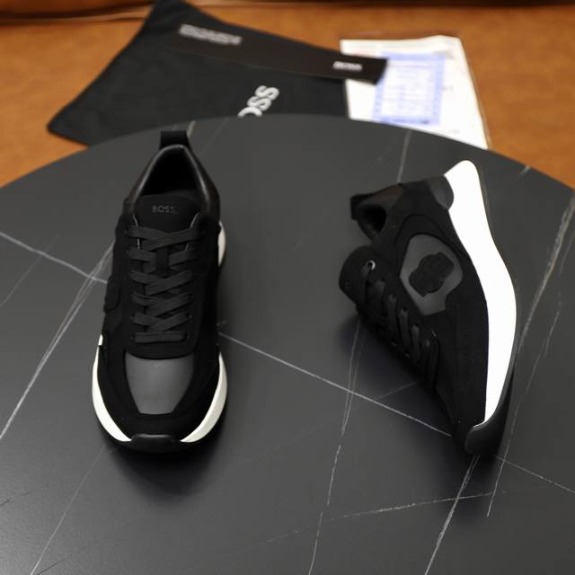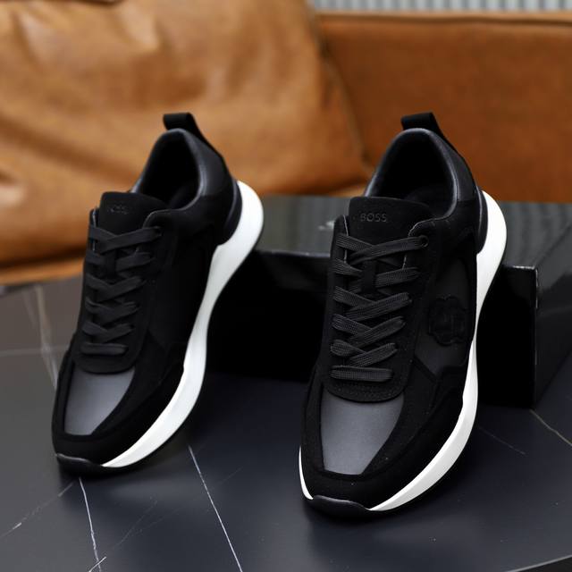 / 出厂价Pp: 品牌:Boss 标准码:39-45 等级:官网同款 材料:原厂牛皮拼接舒适透气内里轻便耐磨运动大底 款式类别:男士时尚休闲鞋 跑步 运动鞋 尊贵奢