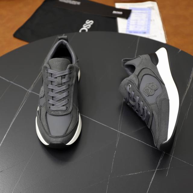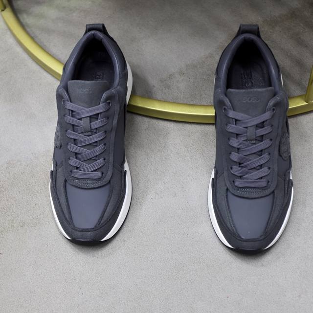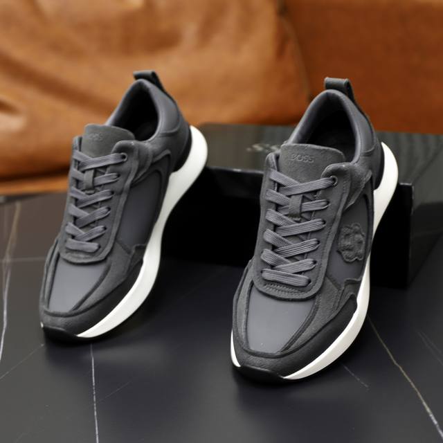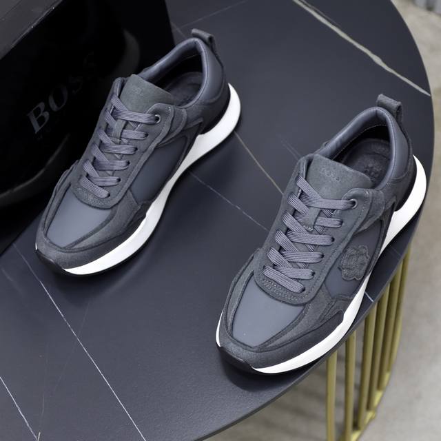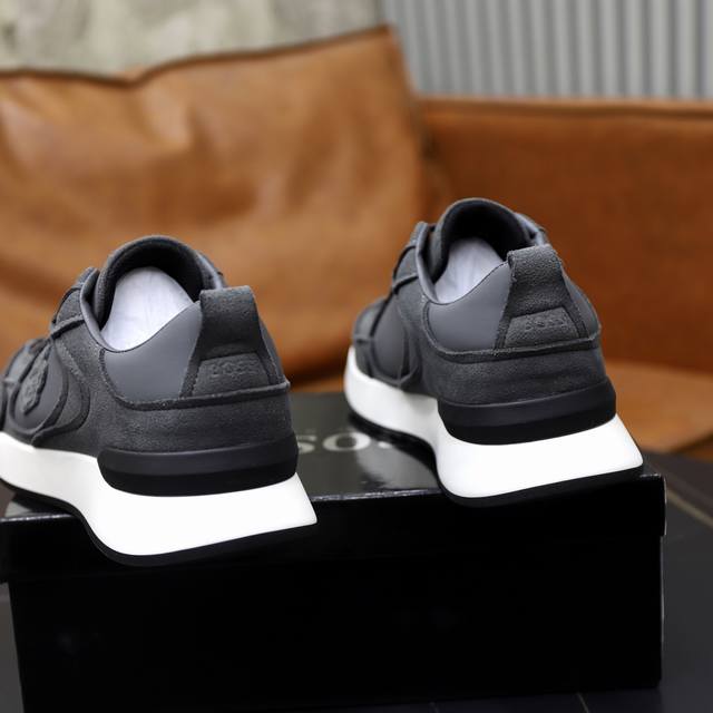 / 出厂价Pp: 品牌:Boss 标准码:39-45 等级:官网同款 材料:原厂牛皮拼接舒适透气内里轻便耐磨运动大底 款式类别:男士时尚休闲鞋 跑步 运动鞋 尊贵奢