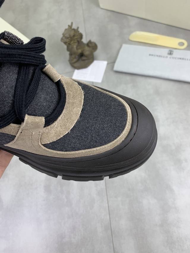 出厂价pp 实价 高版本 Bc新品 Brunello Cucinell* 高帮运动鞋 经典纱线激发了这款运动鞋的精致与运动品味。原版牛皮鞋面极致轻盈且富有弹性,鞋子两侧显示出紧致外观,而鞋头则采用运动配件独特的“微孔”工艺,升华透气性能。针织品的弹性可以确保鞋子更合脚,穿着更舒适 以鲜明的材质对比彰显精致。牛皮中底牛皮垫脚加持 舒适透气 后跟与鞋垫饰有品牌Logo标志、后跟织带提环 原版开模轻质发泡橡胶抓地鞋底 令鞋子穿在脚上舒适且灵活。轻便舒适款 标准码数:35-39 40 41定做 颜色:2款颜色可选