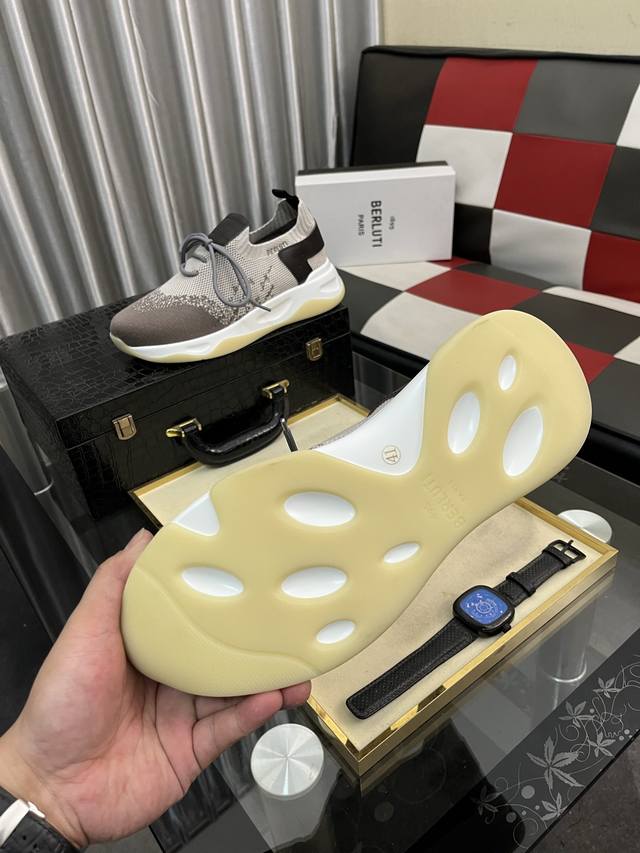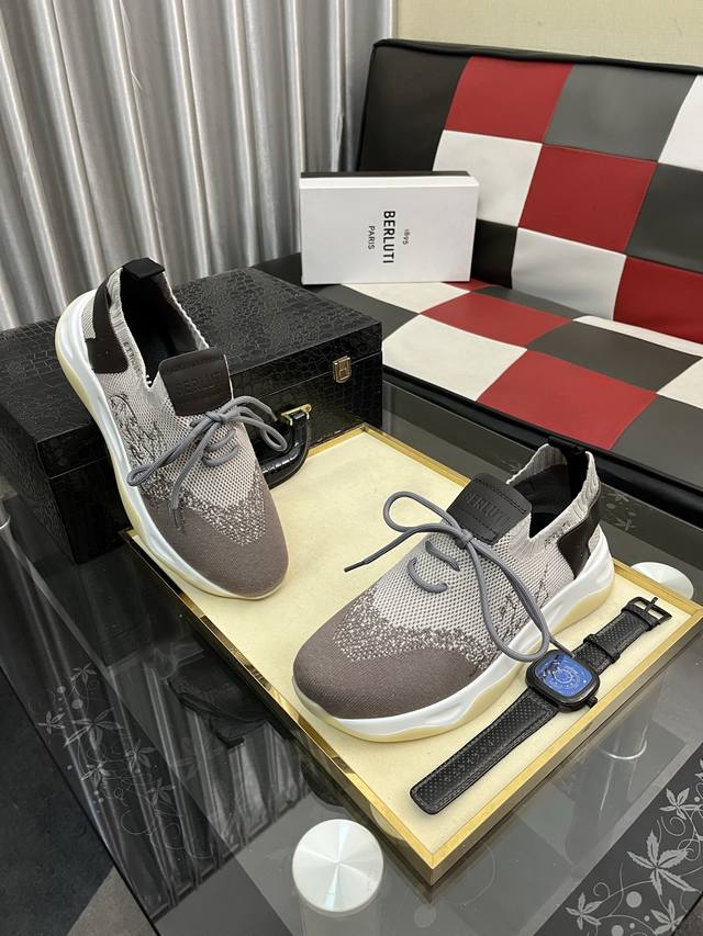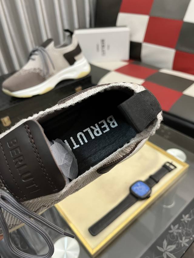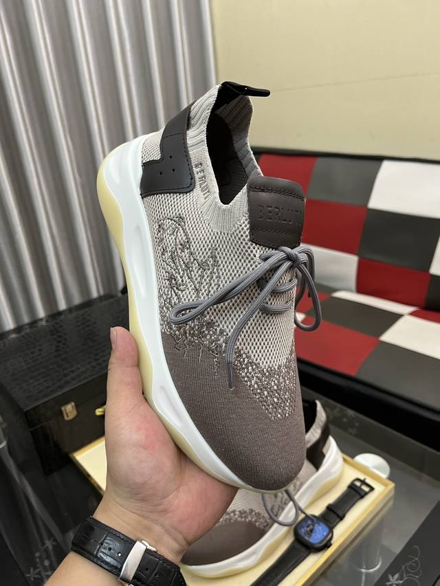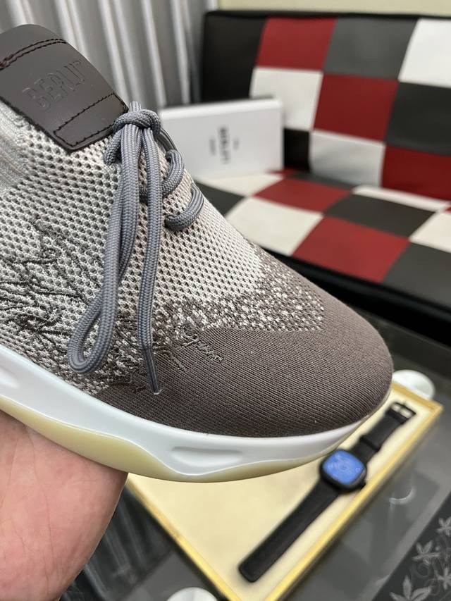 / 出厂价pp: 布鲁提 Berlut* Shadow男士运动鞋履 ,这双袜子鞋用轻盈且极富韧性的针织面料,高密度飞织制成,搭配招牌的小牛皮皮胚手工擦色改色工艺,还