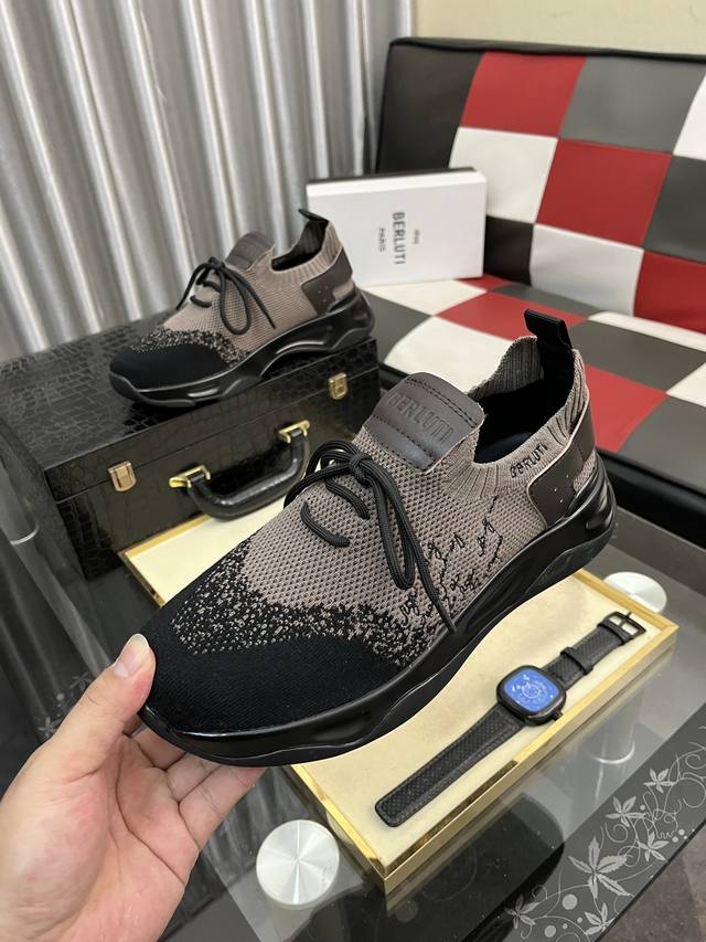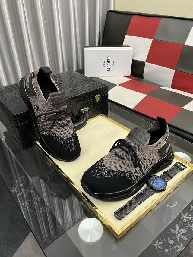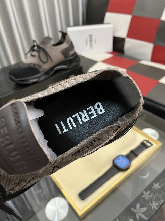 / 出厂价pp: Berluti布鲁提男士高帮运动休闲鞋 面料采用原版磨砂头层牛皮高端牛皮内里 |强烈对比色调突出鞋面线条感|明镀钯孔眼|内部衬垫鞋跟|原版私模Tp