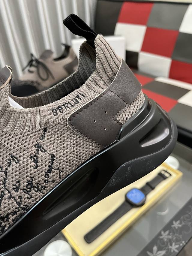 出厂价pp: Berluti布鲁提男士高帮运动休闲鞋 Ddd 面料采用原版磨砂头层牛皮高端牛皮内里 |强烈对比色调突出鞋面线条感|明镀钯孔眼|内部衬垫鞋跟|原版私模Tpu发泡大底 Ddd Size:38-46 DDD