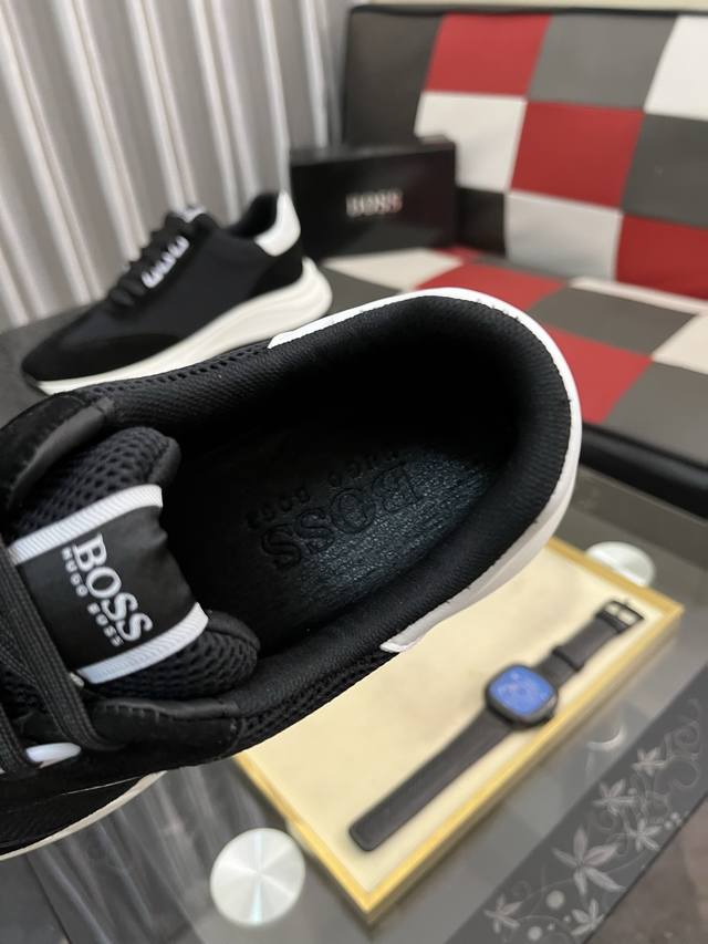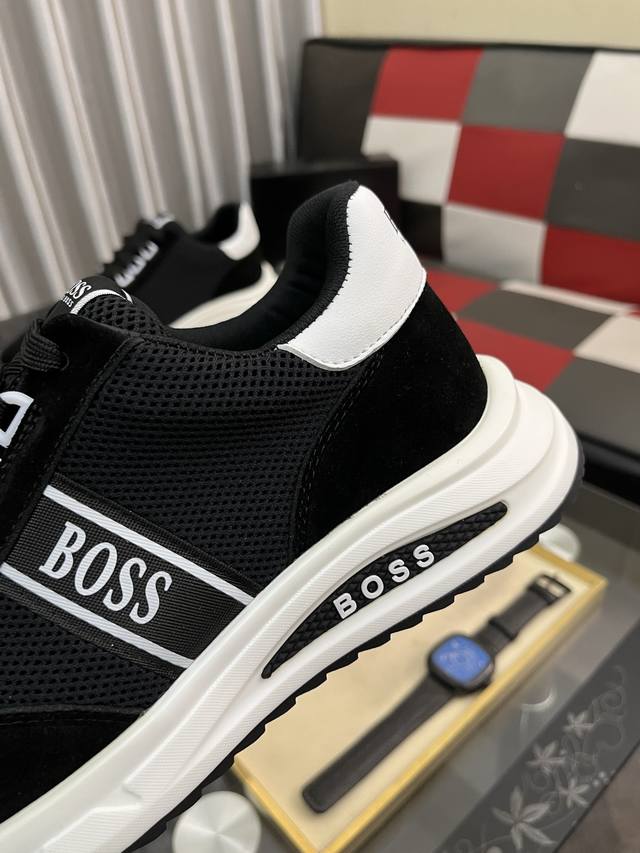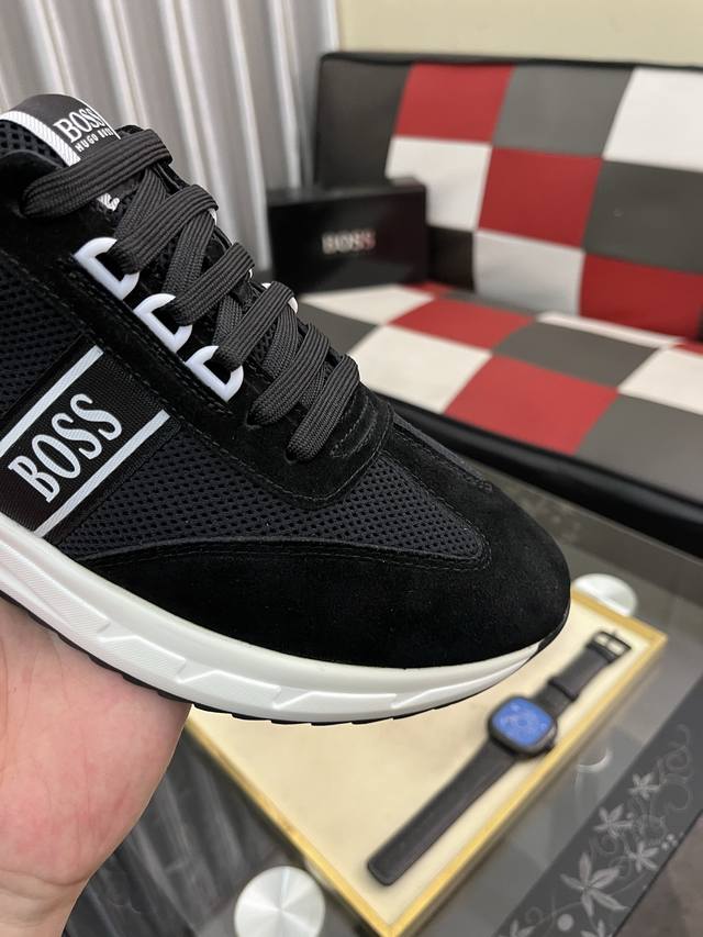 调工厂p价 男装男鞋 运动原单 Boss 2025最新品超级有范儿的一款休闲鞋 精选头层小牛皮刺绣Logo...
