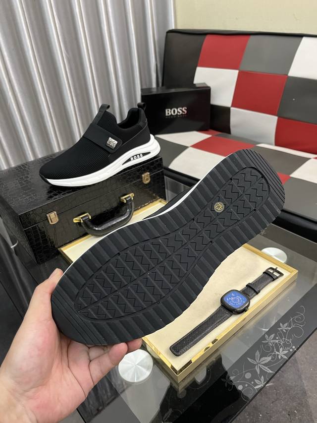 出厂价Pp: Boos 男鞋休闲鞋原单品质鞋面采用进口小牛皮,超透气舒适内里做工精细,高端大气。有时尚典范造型。发泡透明耐磨大底,穿着舒适,值得拥有。码数:38