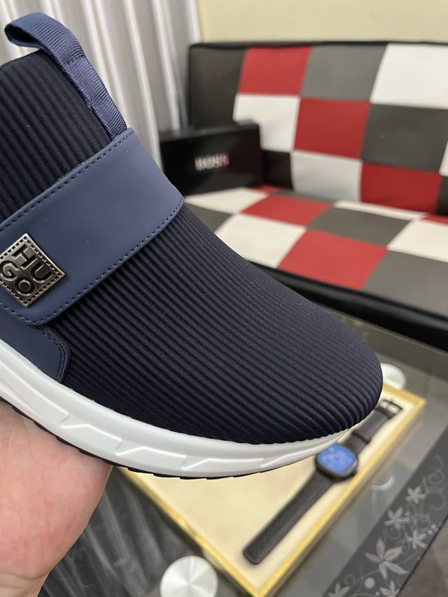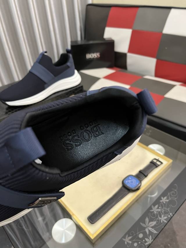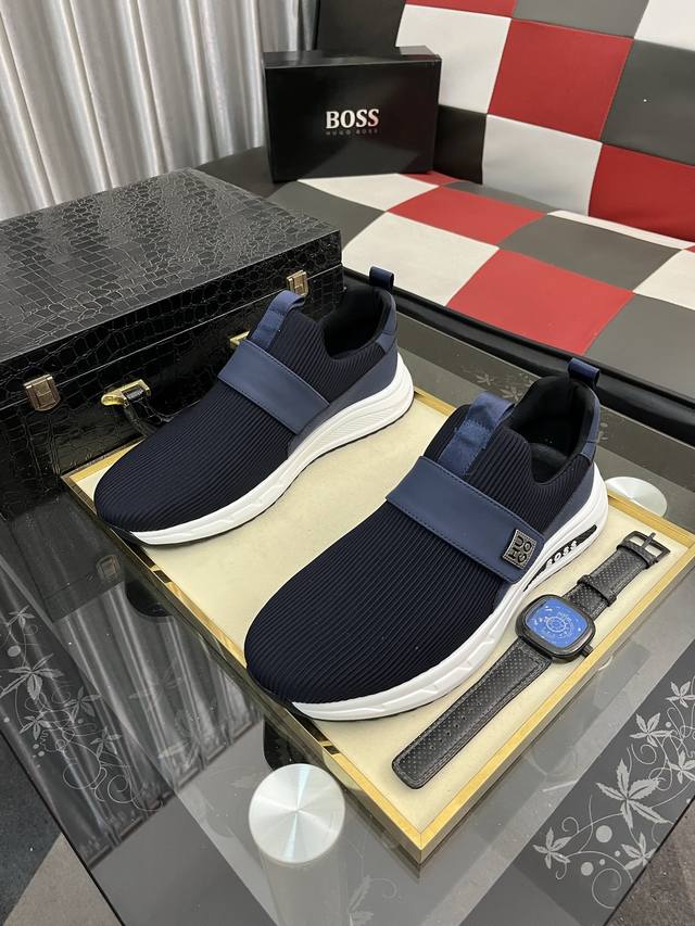 新款: 厂价 Boss* 最新爆款休闲鞋,顶端品牌 奢侈~代购,顶级~质量。 鞋面選用进口透气牛皮搭配布料材质透气羊皮垫脚...