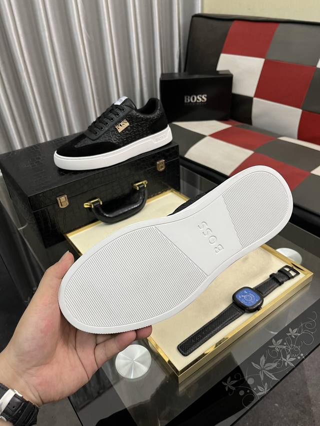 / 出厂价pp Boos 男鞋休闲鞋原单品质鞋面采用进口小牛皮 超透气舒适内里做工精细 高端大气 有时尚典范造型 发泡透明耐磨大底 穿着舒适 值得拥有 码数 38