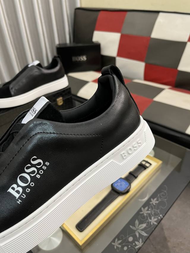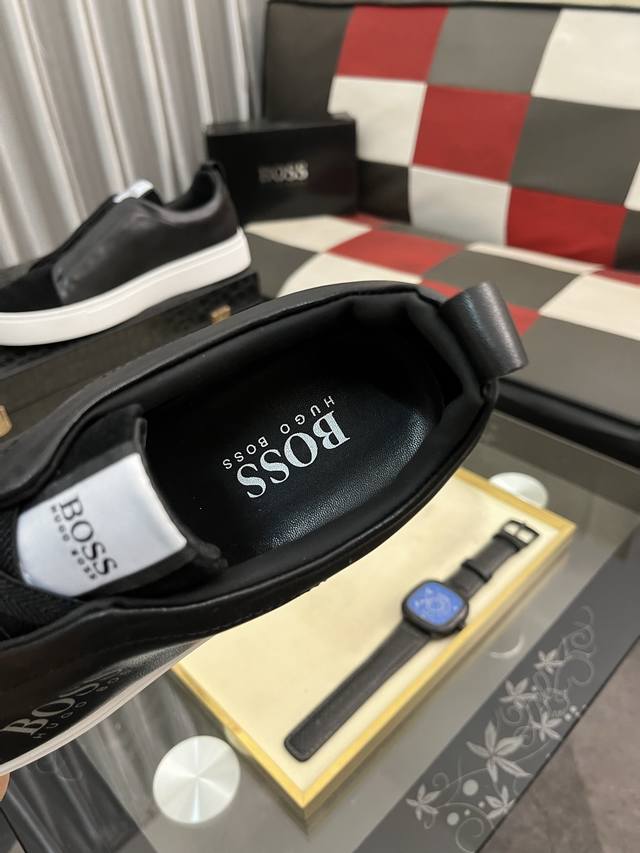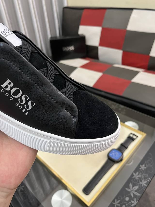新款: 厂价 Boss* 最新爆款休闲鞋,顶端品牌 奢侈~代购,顶级~质量。 鞋面選用进口透气牛皮搭配布料材质透气羊皮垫脚...