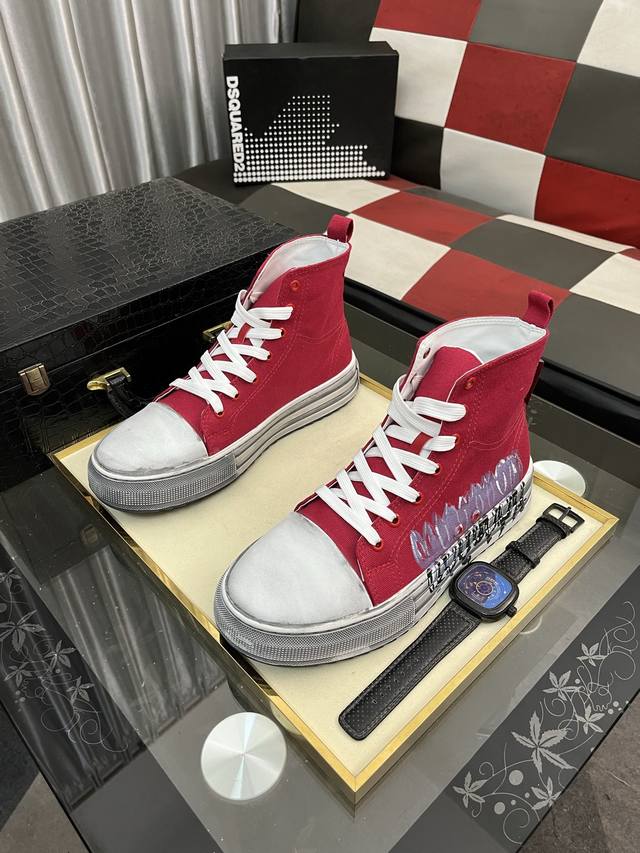出厂价pp: D2~ 男士高帮帆布鞋 2025Z柜同步发售 鞋面选用多材质拼接真皮内里,舒适透气,鞋底:原版舒适耐磨大底,实物拍摄实物更赞码数:36-46,5色可选 DDD