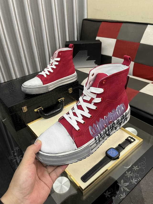 / 出厂价pp: D2~ 男士高帮帆布鞋 2025Z柜同步发售 鞋面选用多材质拼接真皮内里,舒适透气,鞋底:原版舒适耐磨大底,实物拍摄实物更赞码数:36-46,5色