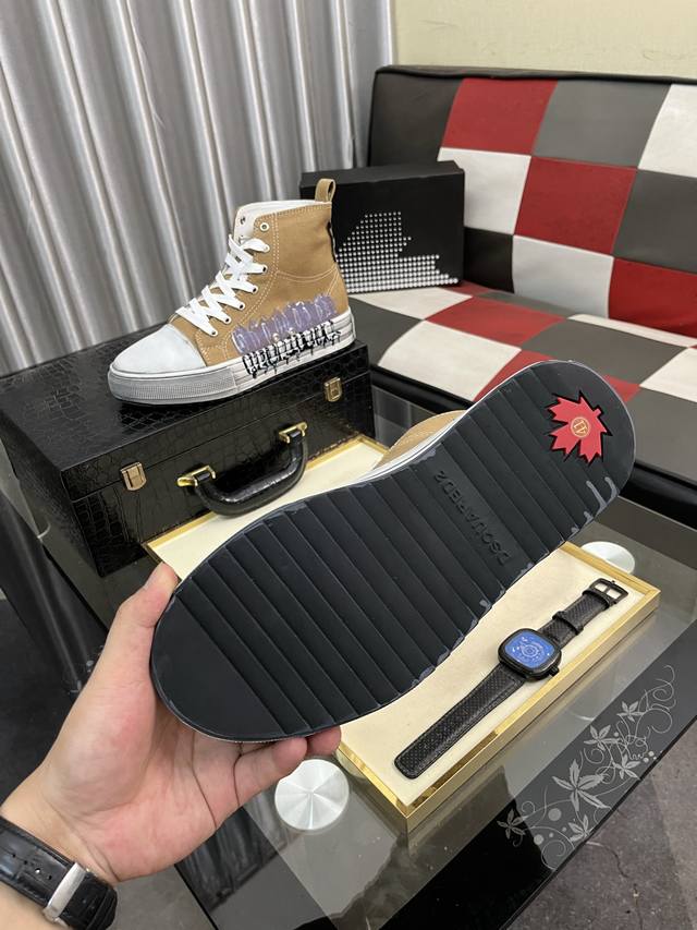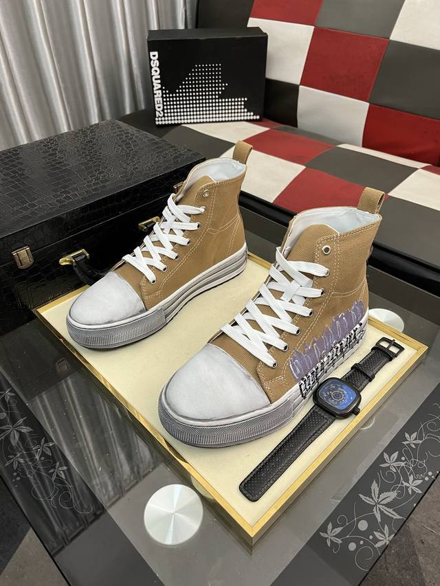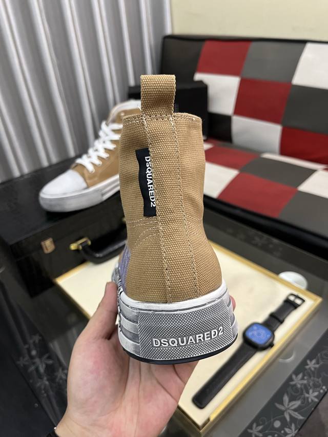 出厂价pp: D2~ 男士高帮帆布鞋 2025Z柜同步发售 鞋面选用多材质拼接真皮内里,舒适透气,鞋底:原版舒适耐磨大底,实物拍摄实物更赞码数:36-46,5色可选 DDD
