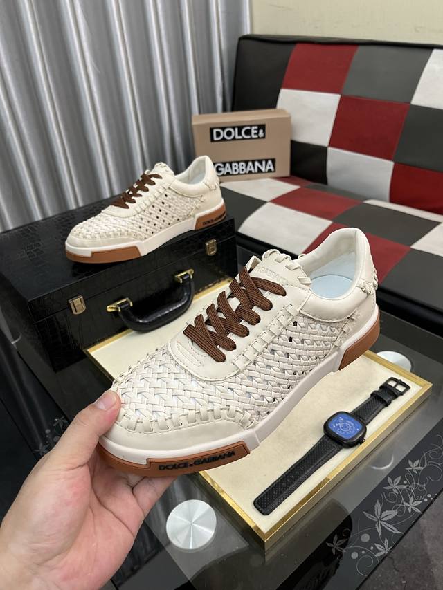 / 出厂价Pp: Dg最新爆款休闲鞋,鞋舌带有品牌标志性细节,丝绸牛皮与牛反绒相结合提升格调。时尚百搭,可为各式造型增光添彩。塑造独具动感活力与摩登气息的精致设计,