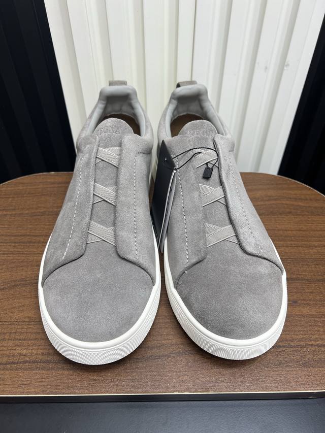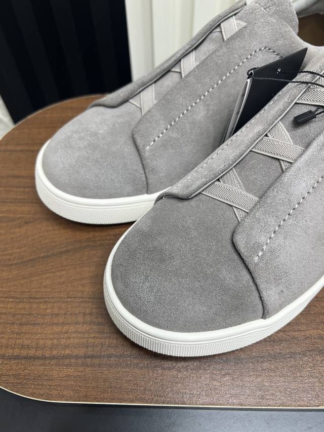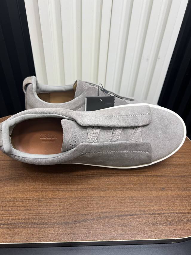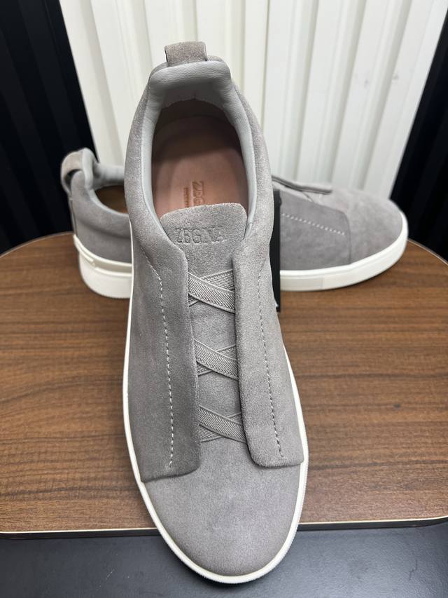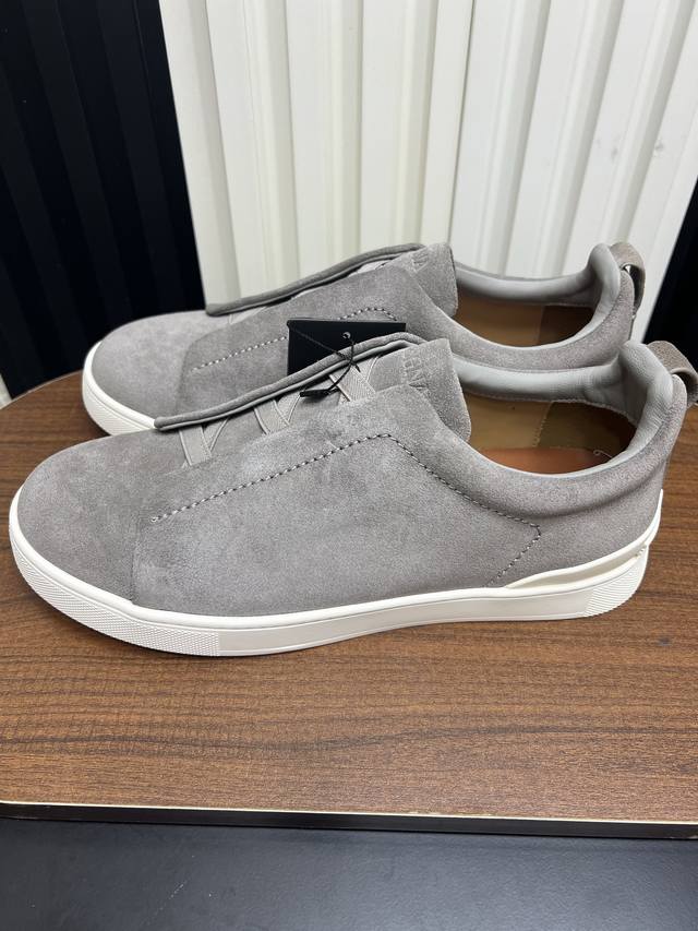 出厂价pp: Ddd Zegna 杰尼亚 Secondskin Triple Stitch 休闲运动鞋,深棕小牛皮,原版发泡轻底 Ddd 这款低帮运动鞋的鞋面光滑柔软。饰以标志性三重交叉松紧细节,致敬品牌精裁夹克的手工缝制工艺。设计轻盈,与白色橡胶鞋底相得益彰,专为快节奏的生活方式打造。这款鞋汲取手套制作灵感,融汇世代工匠经验智慧,选用新西兰顶级小牛皮制作,成就轻盈质地,精致衬里结合非凡韧性。带来独一无二的贴合感。非常轻盈的橡胶外底上点缀双条纹 Logo 运动细节,以超轻结构重新诠释标志性鞋款。领口部位鹿
