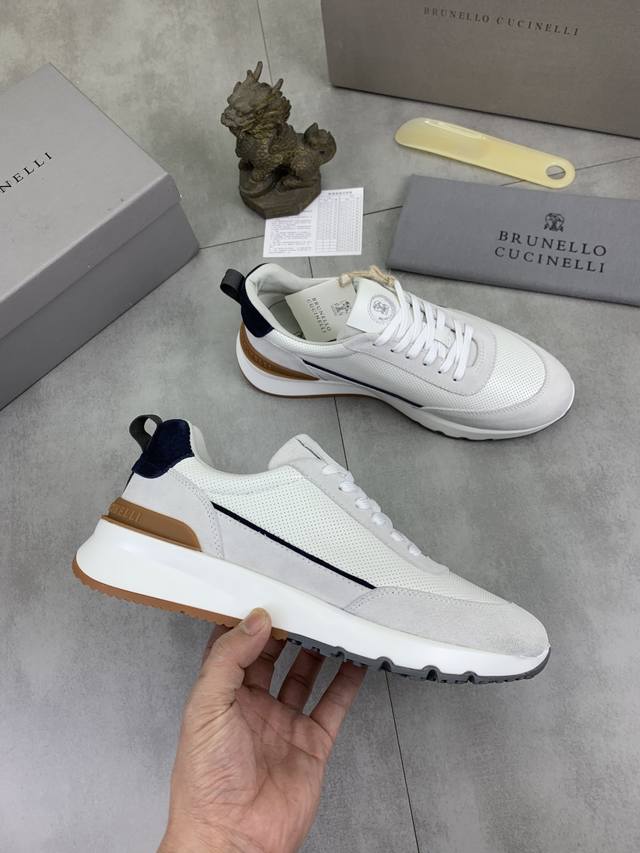 出厂价ppp 实价 高版本 Bc新品 Brunello Cucinell* 低帮运动鞋 官方售价Rmb 40,000 经典纱线激发了这款运动鞋的精致与运动品味。原版牛皮鞋面极致轻盈且富有弹性,鞋子两侧显示出紧致外观,而鞋头则采用运动配件独特的“微孔”工艺,升华透气性能。针织品的弹性可以确保鞋子更合脚,穿着更舒适 以鲜明的材质对比彰显精致。牛皮中底牛皮垫脚加持 舒适透气 后跟与鞋垫饰有品牌Logo标志、后跟织带提环 原版开模轻质发泡橡胶抓地鞋底 令鞋子穿在脚上舒适且灵活。轻便舒适款 标准码数:38-44 颜