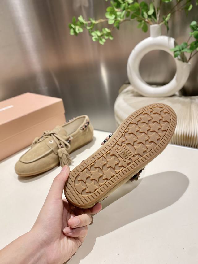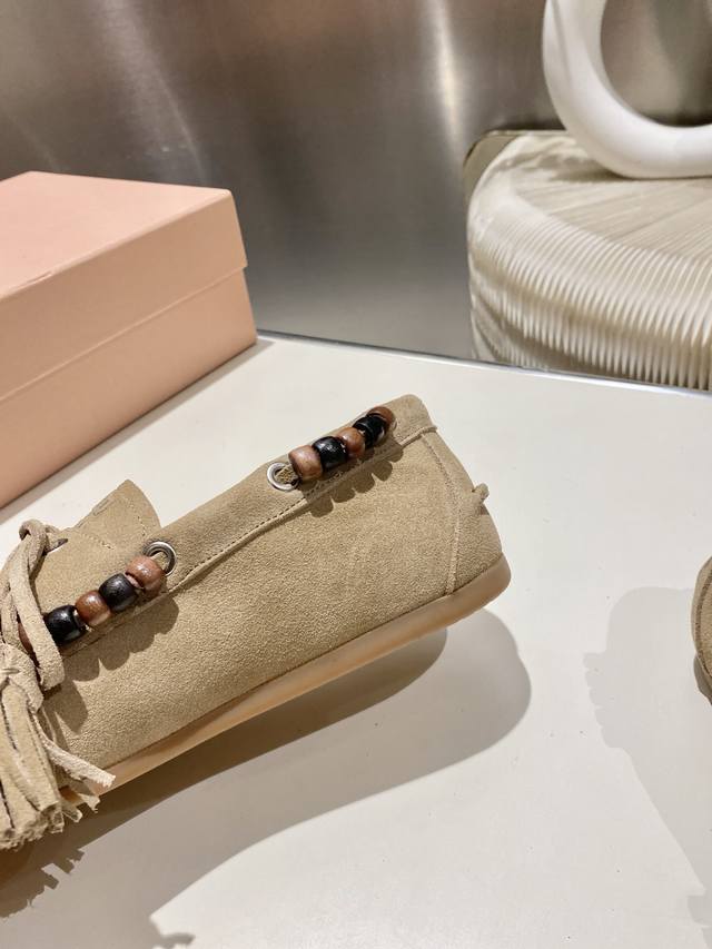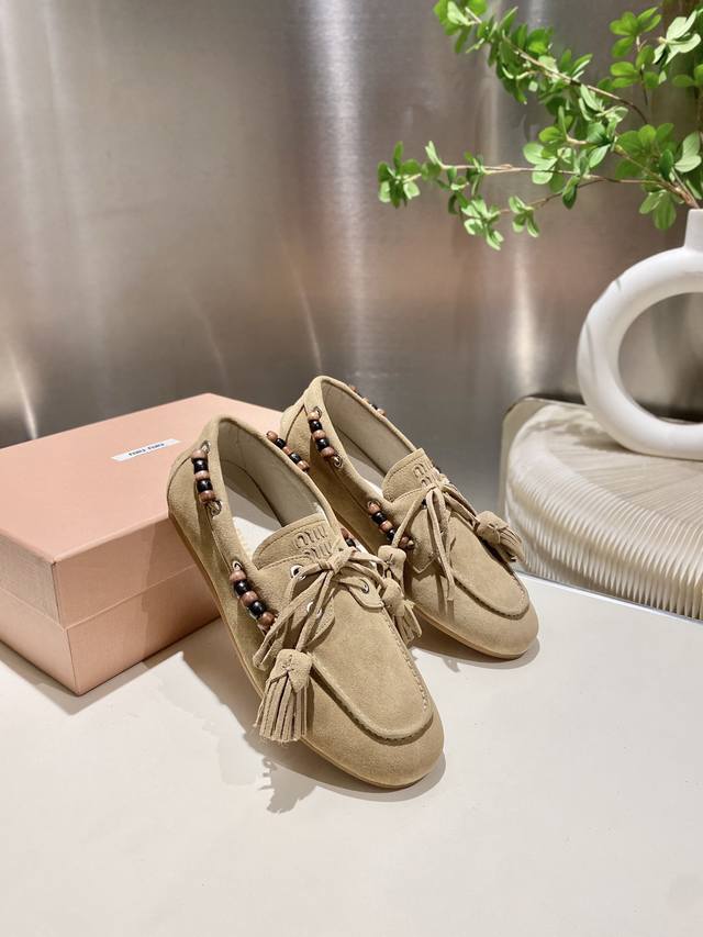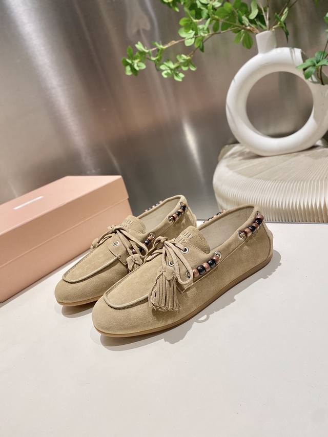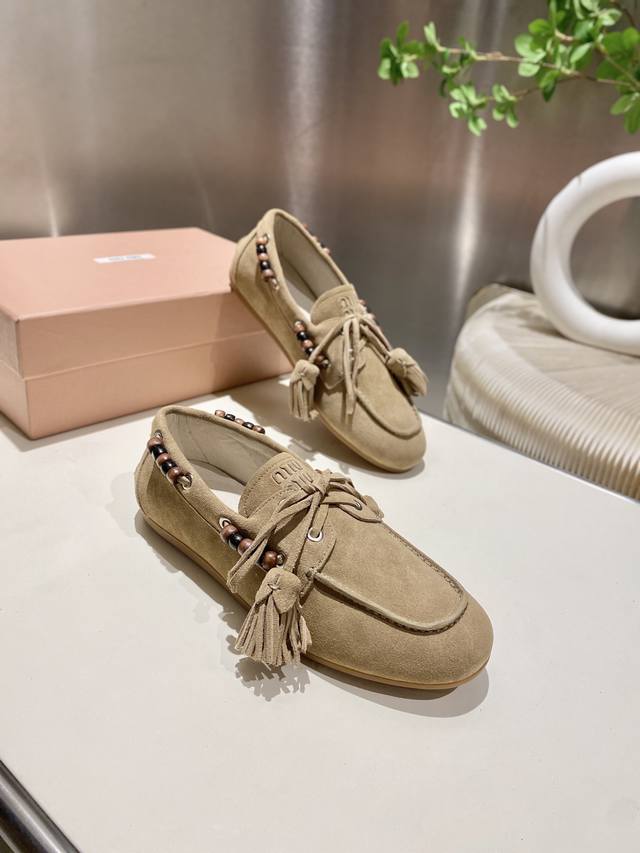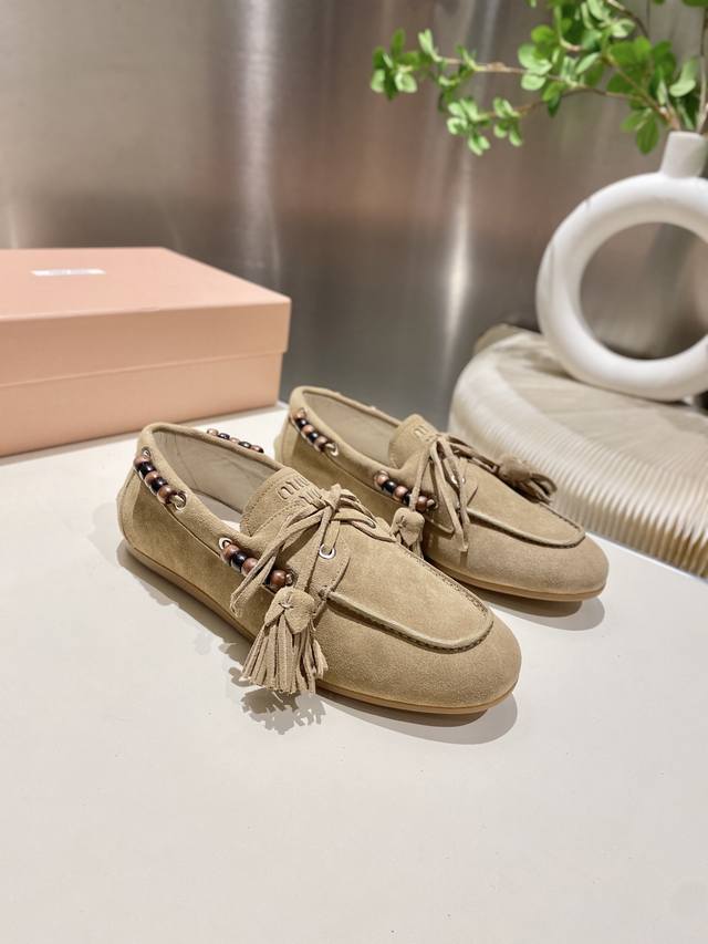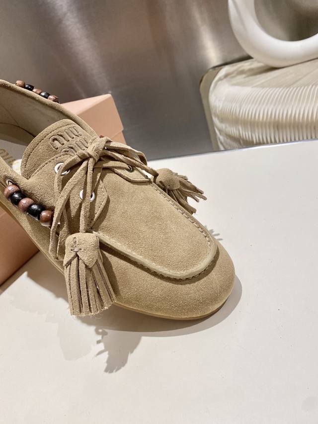 / 出厂单鞋 托鞋330缪缪2025擦色系带鸡眼平底豆豆鞋 流苏走秀新款 .复古小皮鞋乐福鞋 豆豆鞋 复古时尚 简约高级 随意搭配 上脚非常舒适,年度必入款!超级重