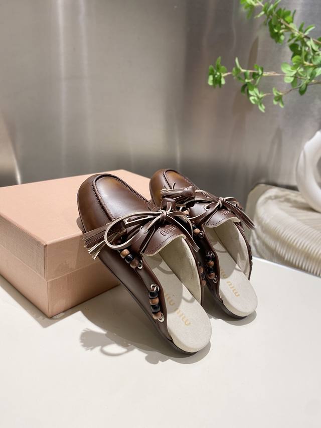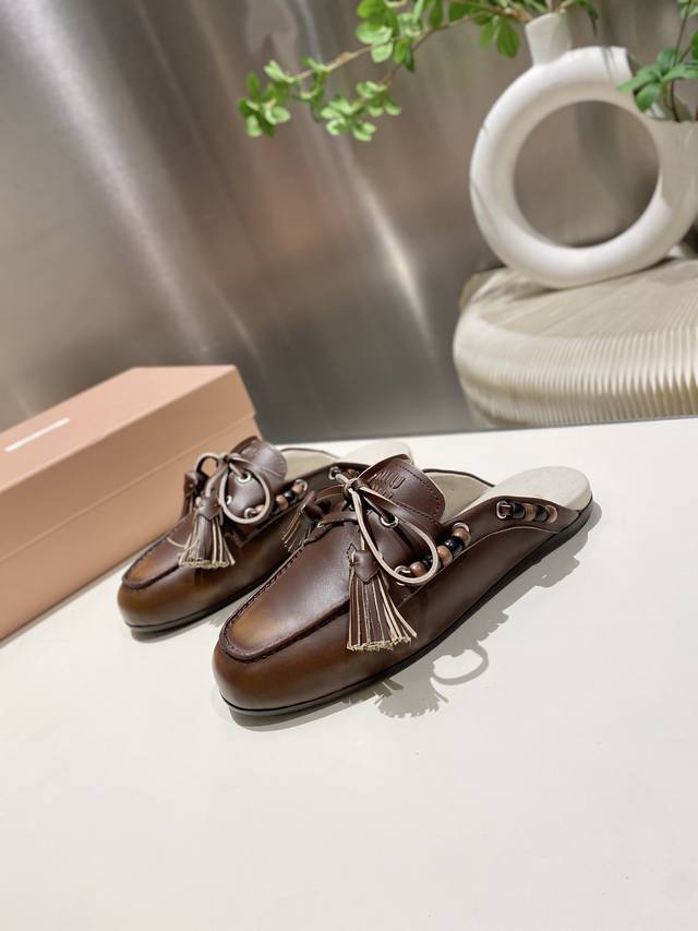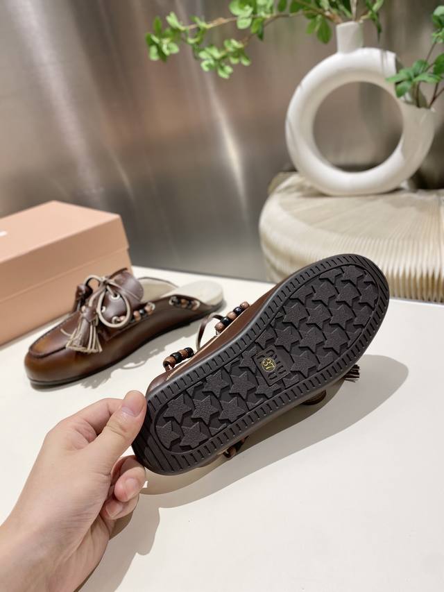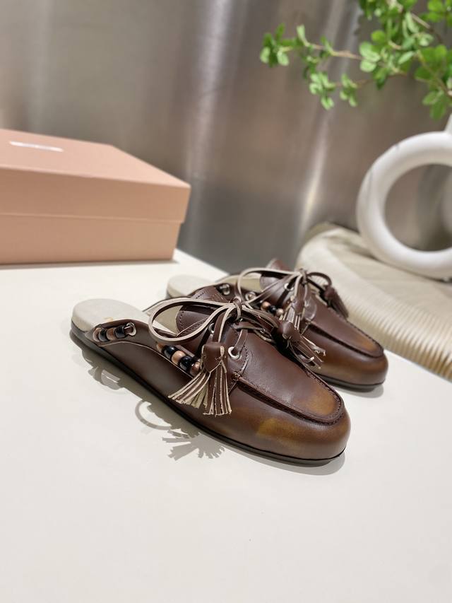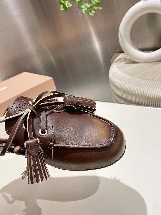/ 出厂单鞋 托鞋330缪缪2025擦色系带鸡眼平底豆豆鞋 流苏走秀新款 .复古小皮鞋乐福鞋 豆豆鞋 复古时尚 简约高级 随意搭配 上脚非常舒适,年度必入款!超级重