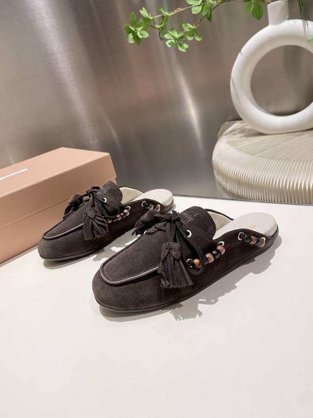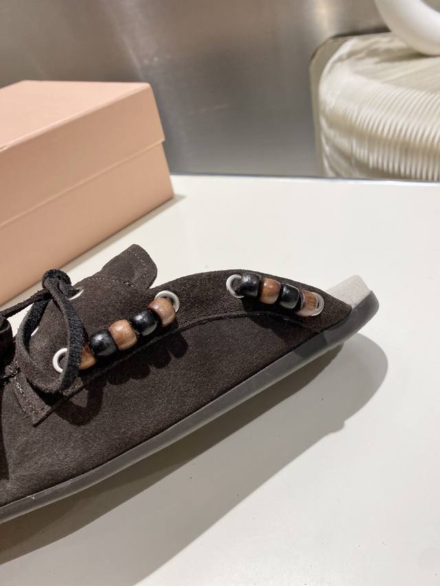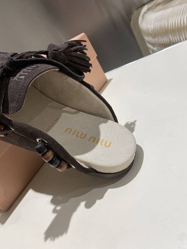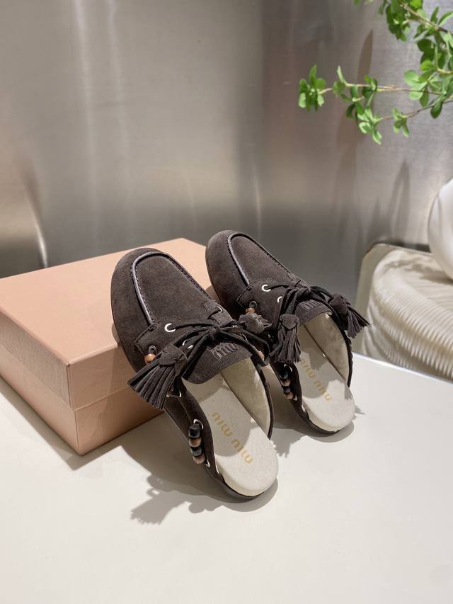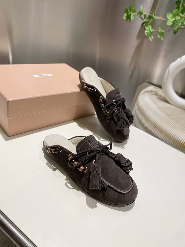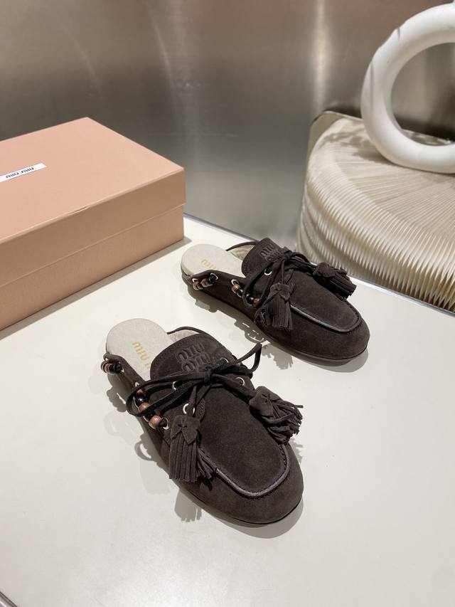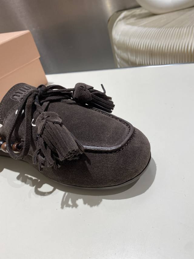 / 出厂单鞋 托鞋330缪缪2025擦色系带鸡眼平底豆豆鞋 流苏走秀新款 .复古小皮鞋乐福鞋 豆豆鞋 复古时尚 简约高级 随意搭配 上脚非常舒适,年度必入款!超级重