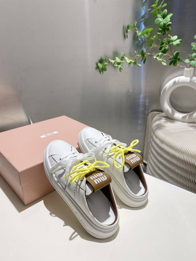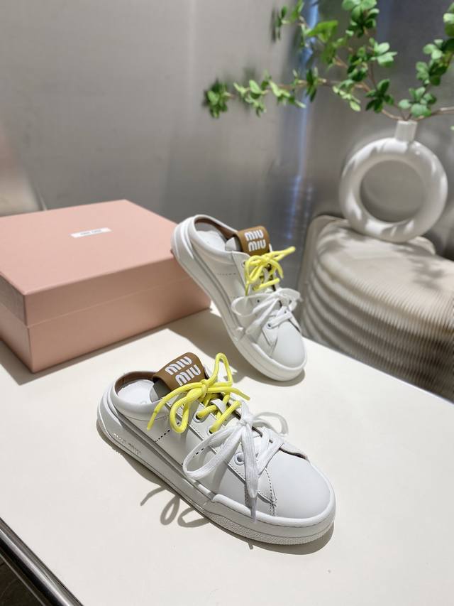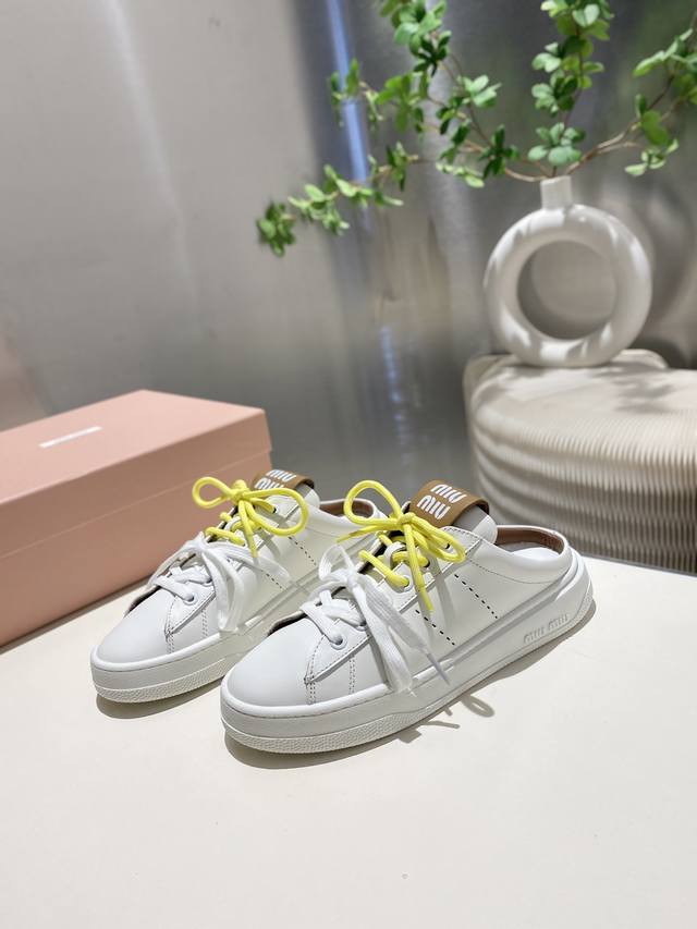 / 出厂满帮 拖鞋330缪缪2025春夏新款 毛毛休闲小白鞋上新,官网主推款 简约的格板设计 级具辨识度的鞋舌 上脚阳光 青春,随意搭配 长裙 短裙 短裤 休闲系列
