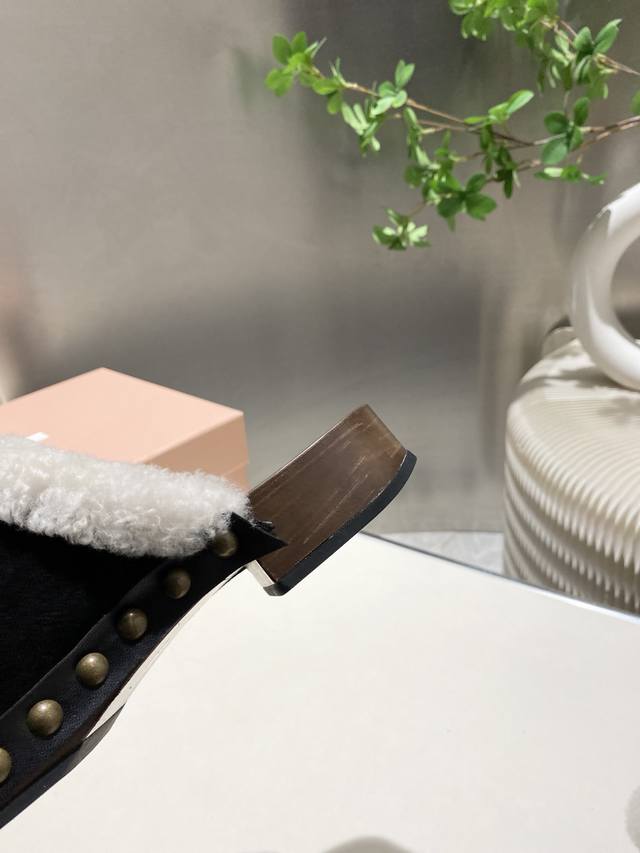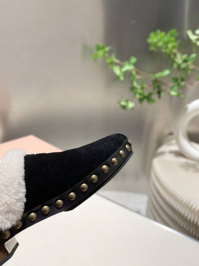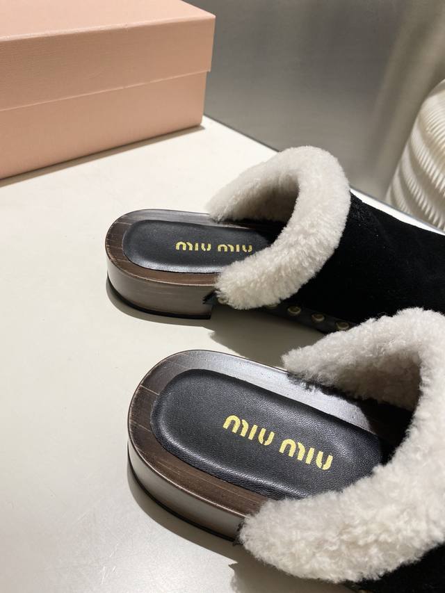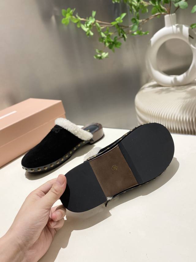 出厂 缪缪新款秋冬羊毛包头半拖,上脚舒适柔软,上脚特别方便,懒人拖鞋随走随穿 鞋面牛反绒内里羊毛,羊皮垫脚,原版开模防滑pu发泡底 跟高:3Cm 35-41 4