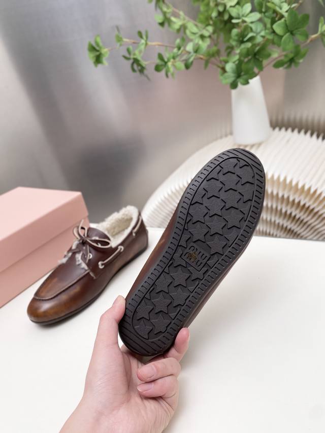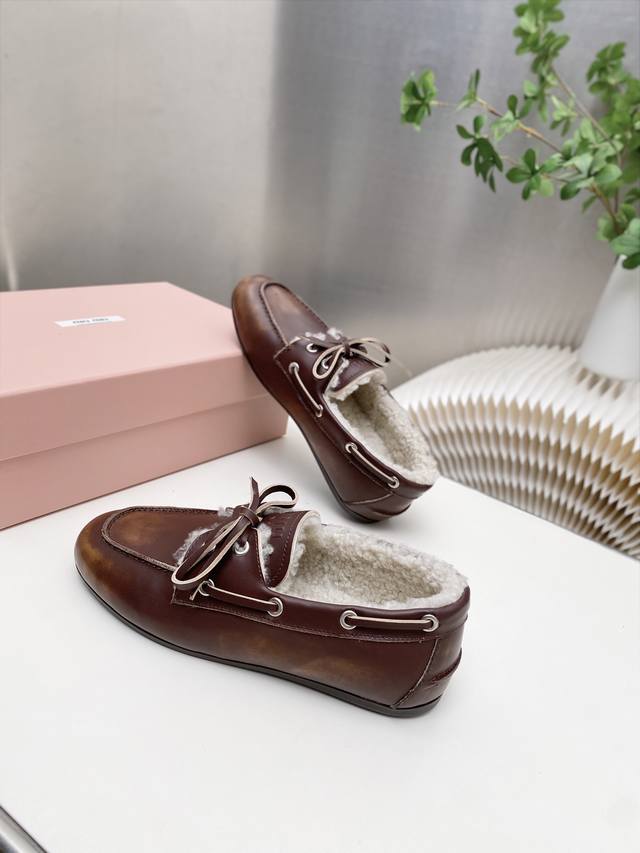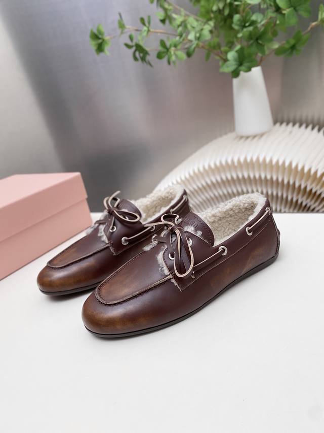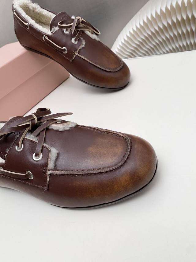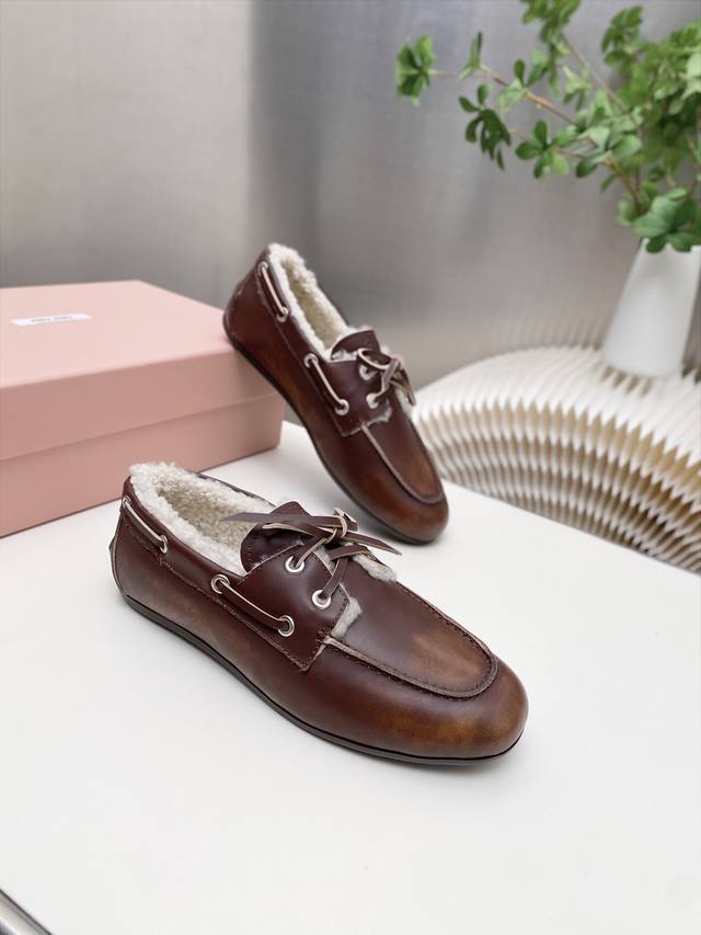 / 出厂 缪缪 擦色系带鸡眼平底豆豆鞋 走秀新款 .复古小皮鞋乐福鞋 豆豆鞋 复古时尚 简约高级 随意搭配 上脚非常舒适,年度必入款!超级重工 每一双都是独一无二的