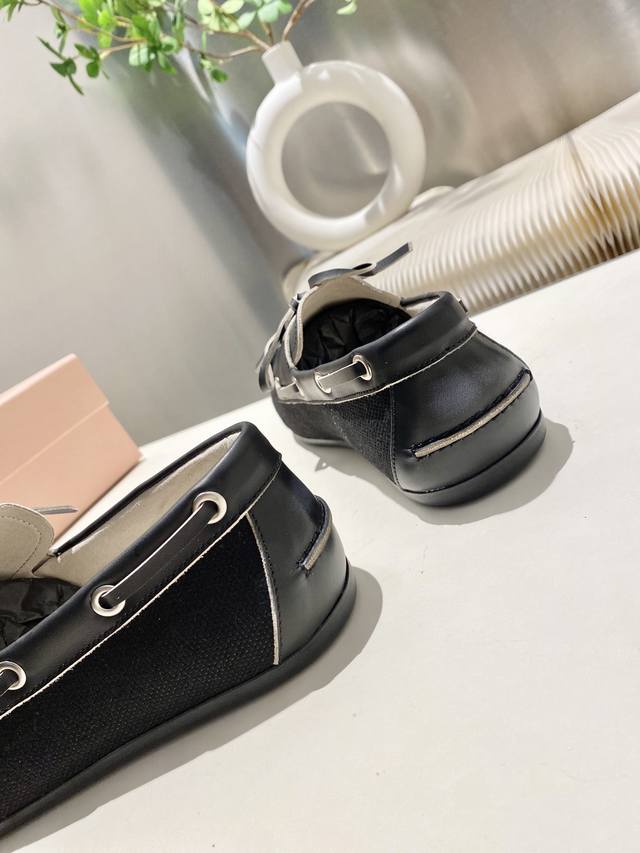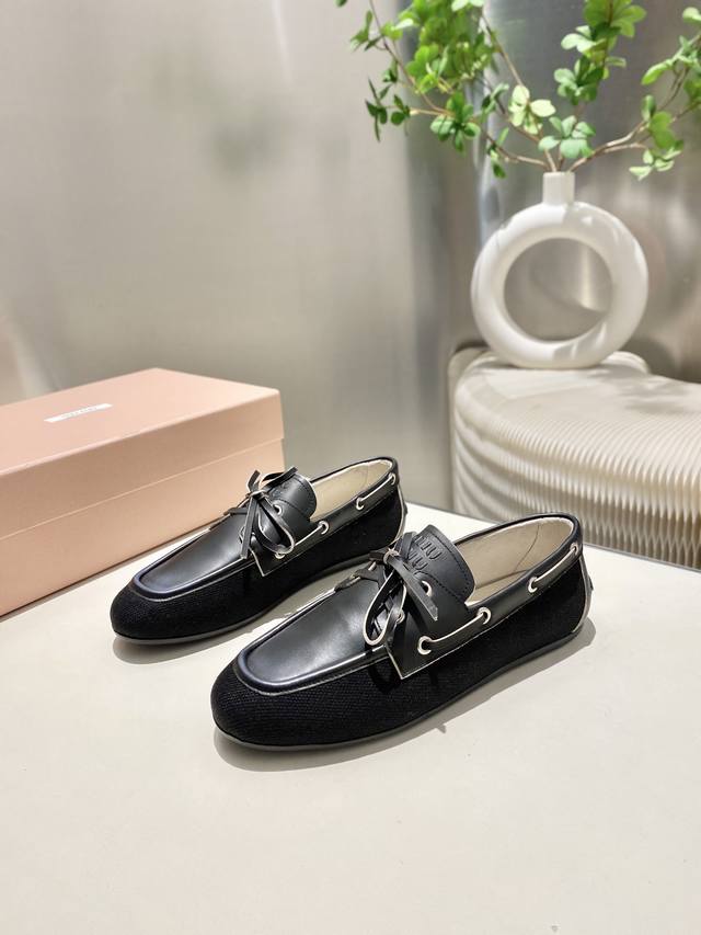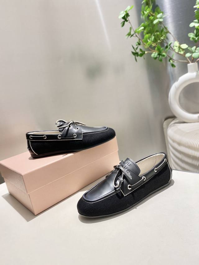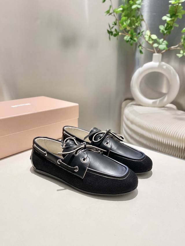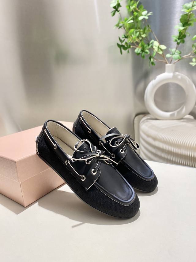 / 出厂 缪缪2025擦色系带鸡眼平底豆豆鞋 走秀新款 .复古小皮鞋乐福鞋 豆豆鞋 复古时尚 简约高级 随意搭配 上脚非常舒适,年度必入款!超级重工 每一双都是独一
