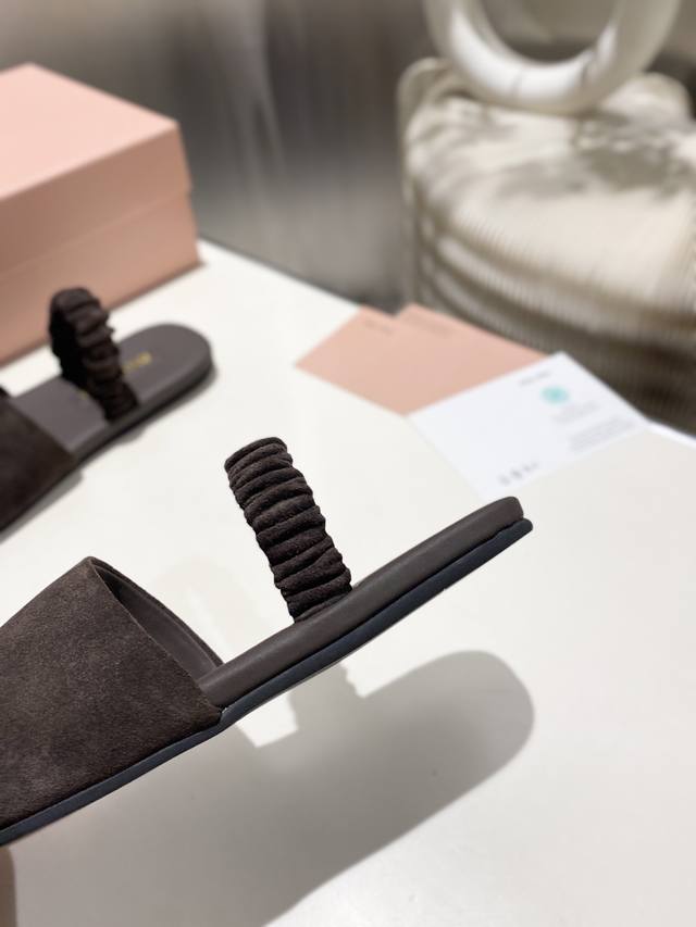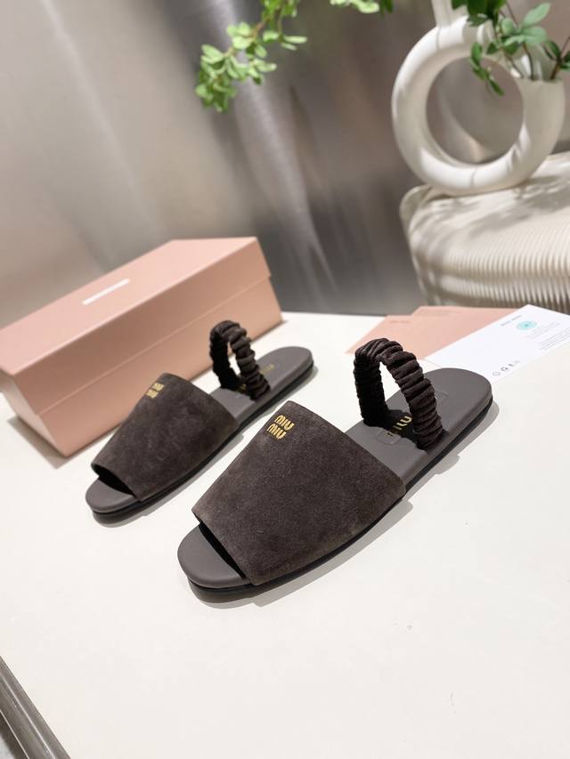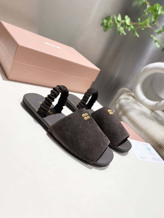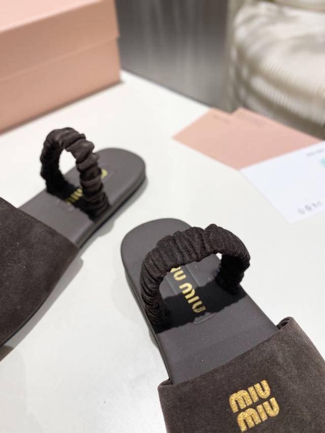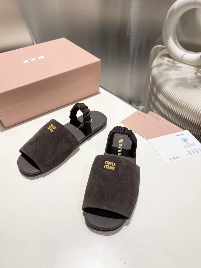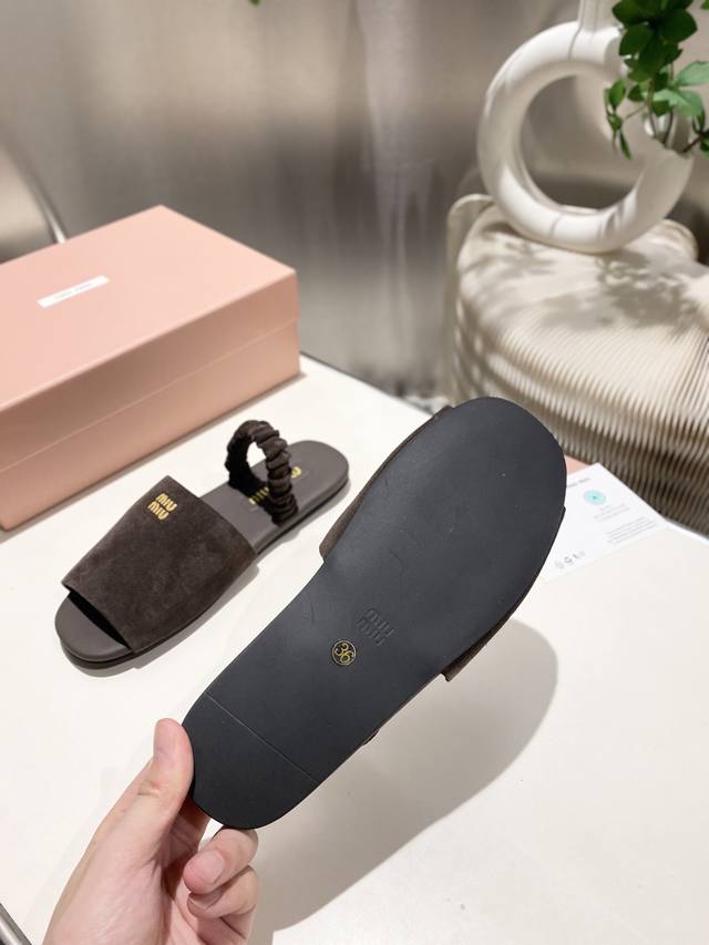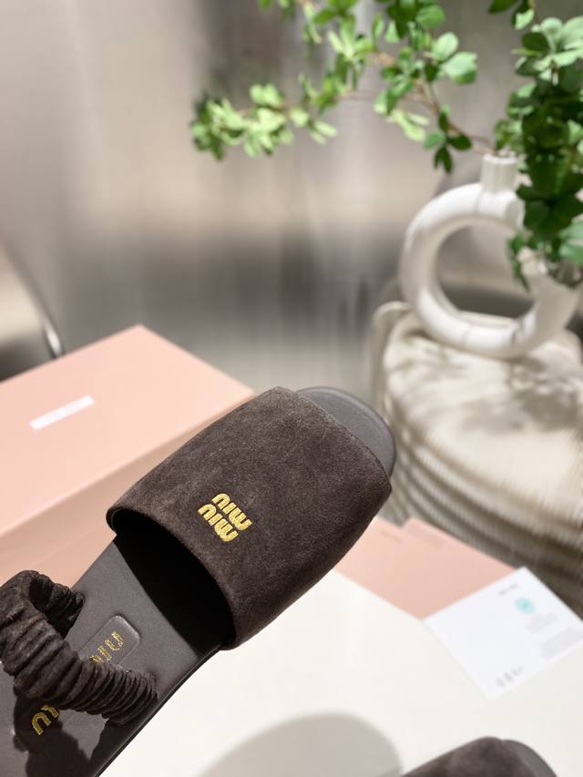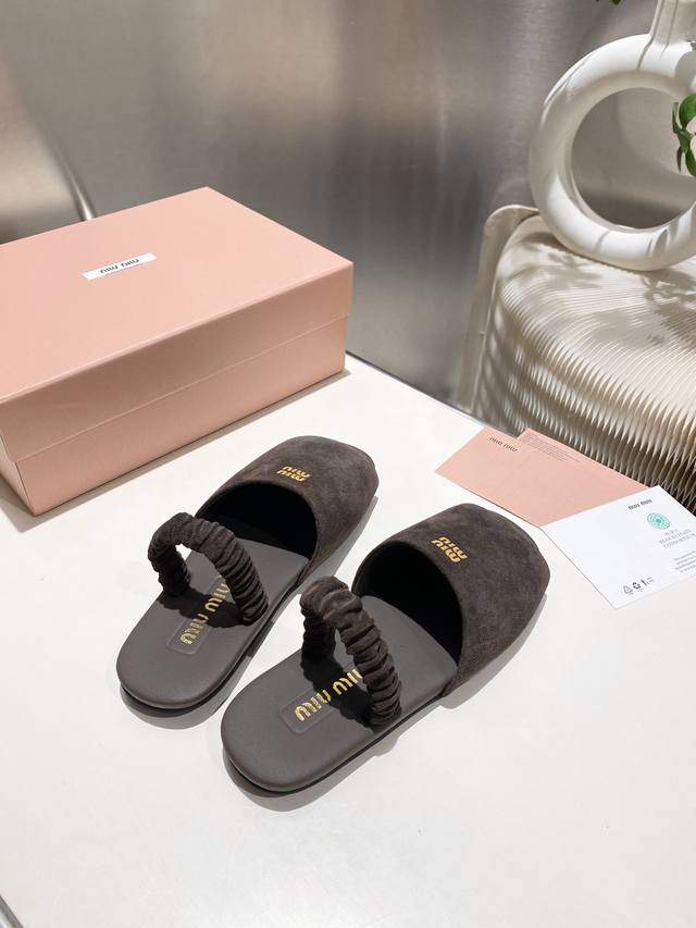 / 出厂 缪缪2025早春走秀新款一脚蹬懒人拖鞋 官方春夏走秀新款,时髦百搭,无论光脚穿还是搭配袜子穿都超级百搭!原版一比一开发 鞋面:定制进口牛反绒 内里:羊皮