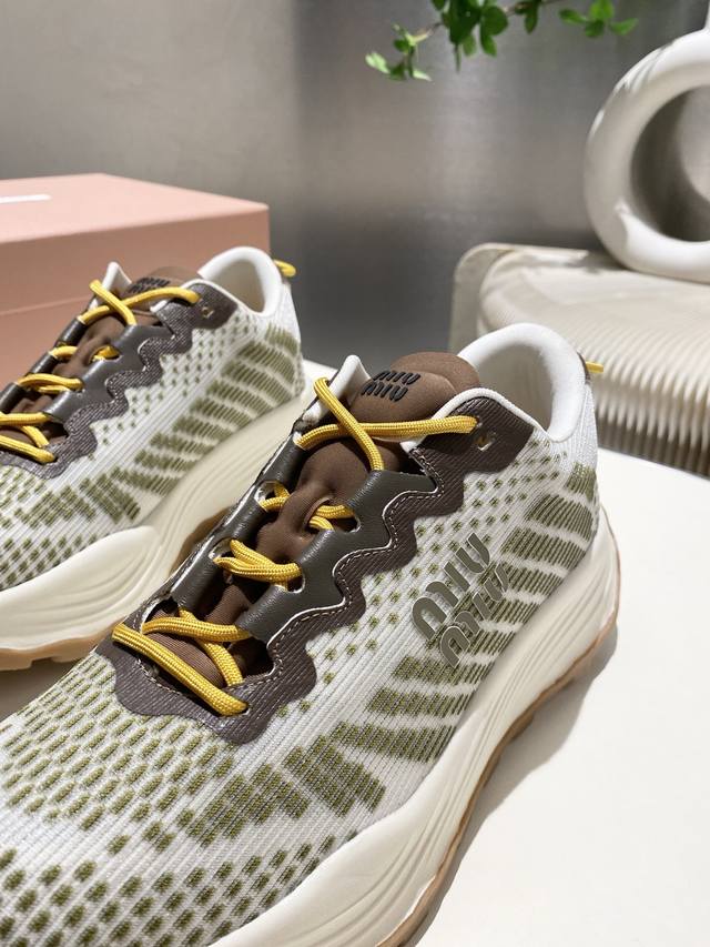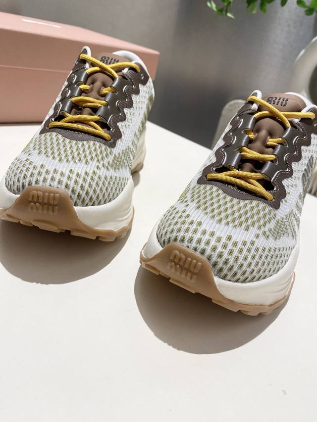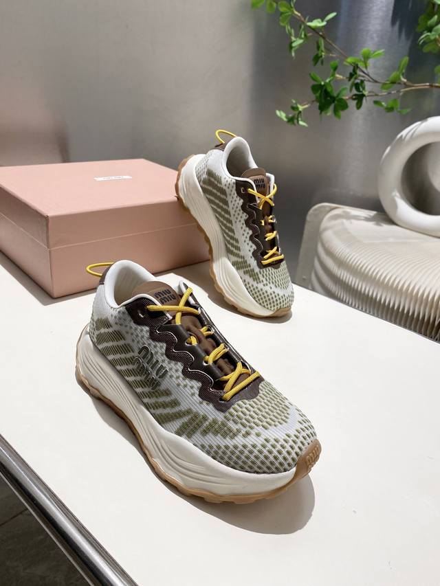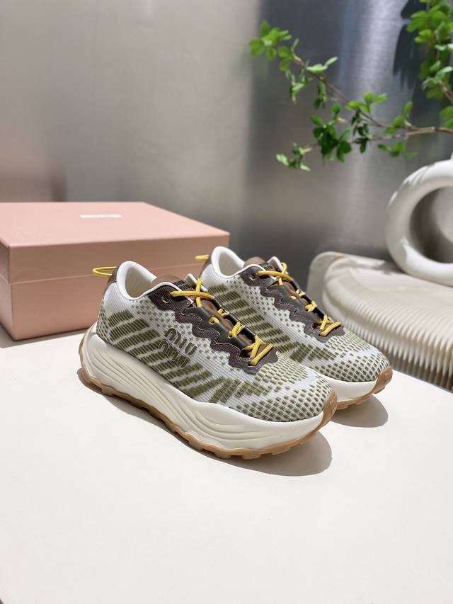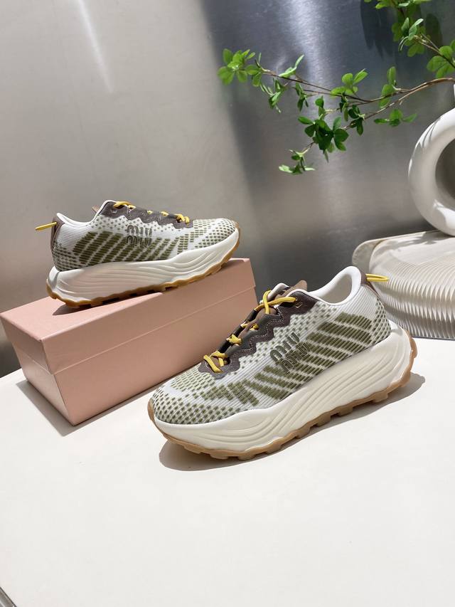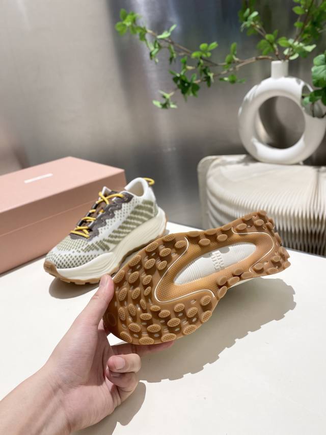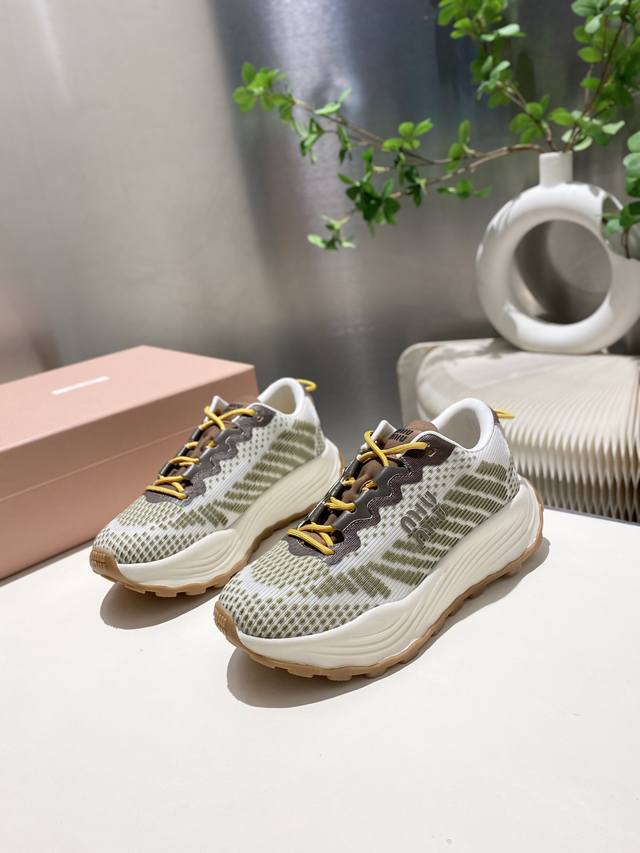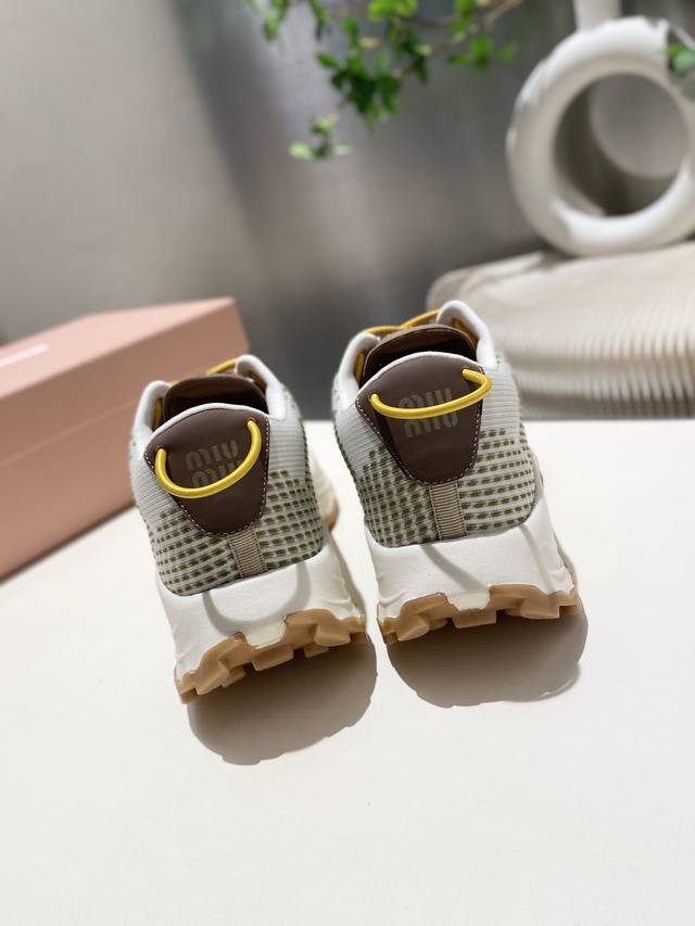 出厂 缪缪2025走秀新款爆款来袭.网面厚底德训鞋休闲运动鞋 这款系带运动鞋妥妥的美式休闲风格~上脚好看又舒适,经典百搭单品! 面料:进口特殊网面 内里:进口透