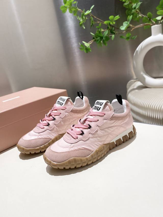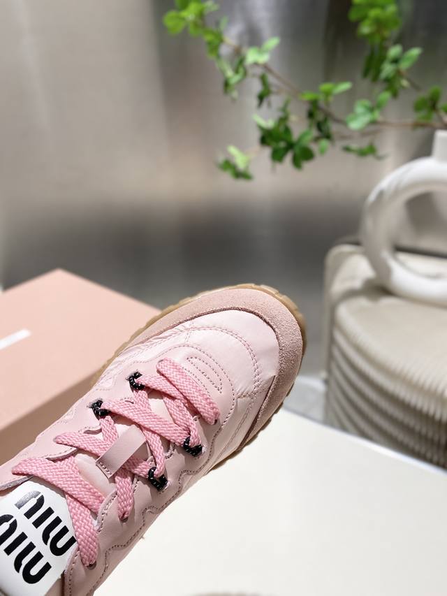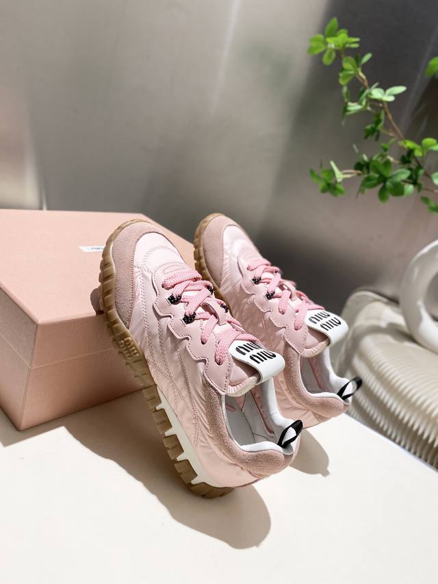 出厂 缪缪2025阿甘休闲鞋运动鞋 春夏新款 最近爆款前卫大胆的设计 .Miu风格融于此款厚底帆布运动鞋的简约线条 ,别致徽标饰于鞋舌与背后,点缀复古 厚底设计 大胆创新前卫 上脚舒适透气 颜色也很百搭码数35-41 40.41订做