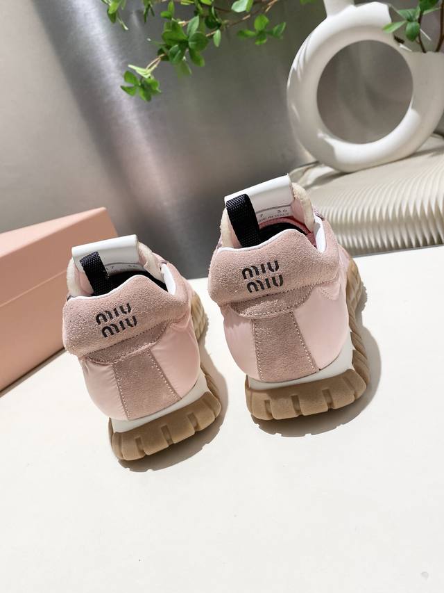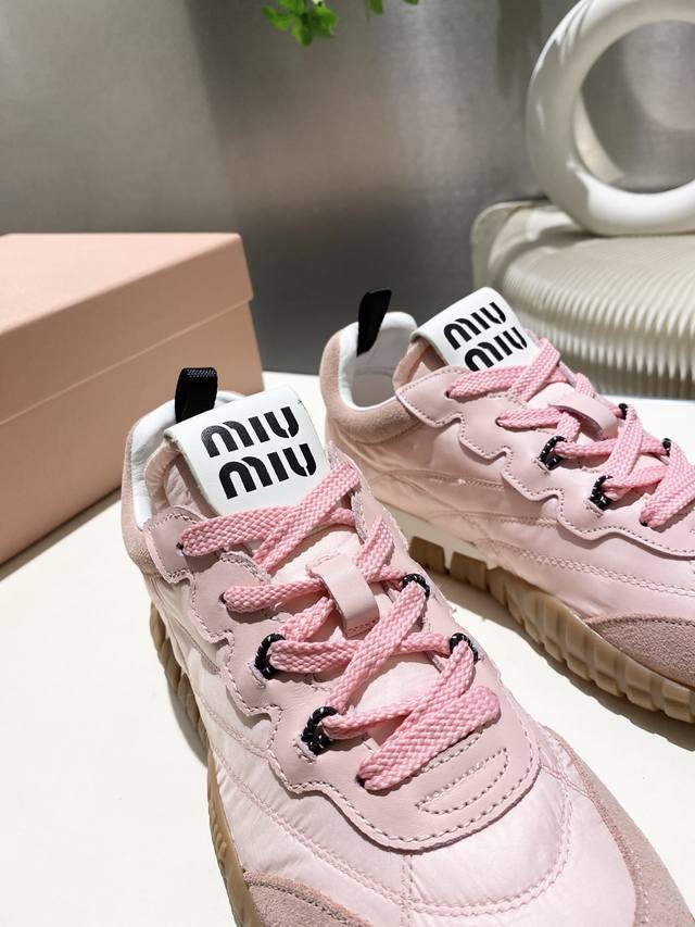 出厂 缪缪2025阿甘休闲鞋运动鞋 春夏新款 最近爆款前卫大胆的设计 .Miu风格融于此款厚底帆布运动鞋的简约线条 ,别致徽标饰于鞋舌与背后,点缀复古 厚底设计