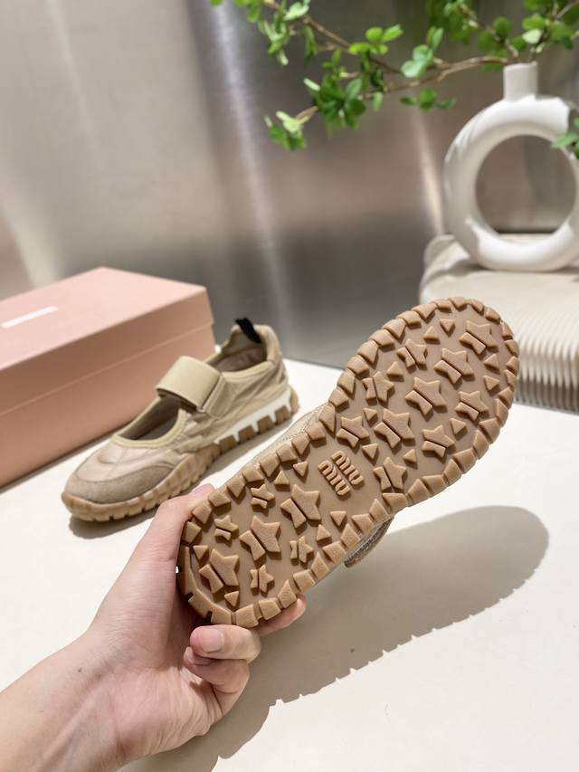 出厂 缪缪2025阿甘休闲鞋运动鞋 春夏新款 最近爆款前卫大胆的设计 .Miu风格融于此款厚底帆布运动鞋的简约线条 ,别致徽标饰于鞋舌与背后,点缀复古 厚底设计 大胆创新前卫 上脚舒适透气 颜色也很百搭码数35-41 40.41订做