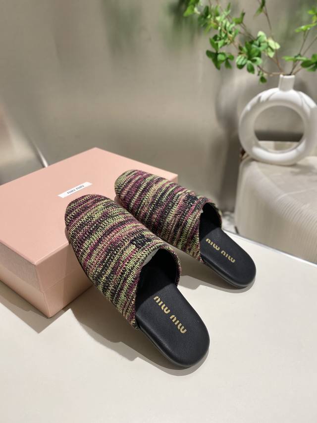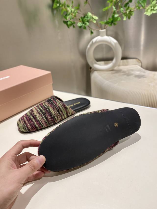 / 出厂 顶级版本代购级Miumiu2025早春新款毛线编织包头拖鞋 各大博主推荐,闭眼入都是不会后悔 随意搭配都好看,原版一比一开发 鞋面:定制进口编织 鞋底:橡