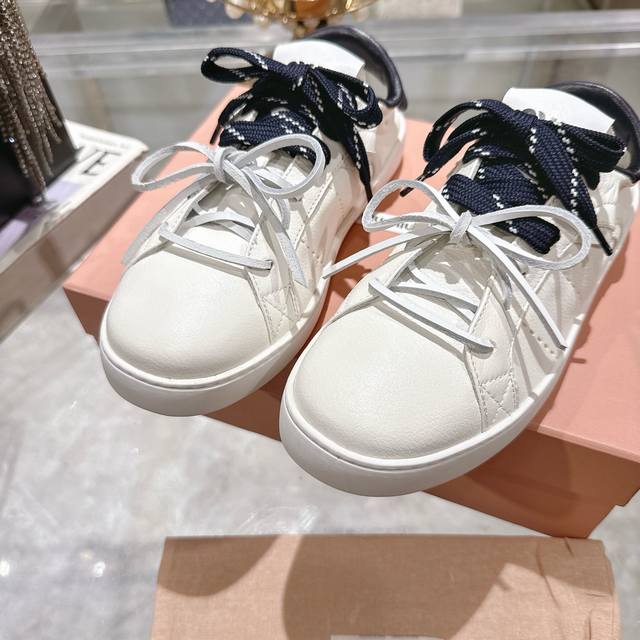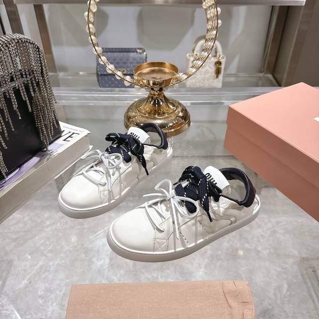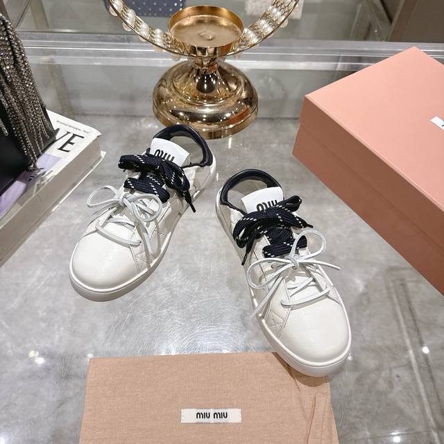 / 出厂 顶级版本 Miumiu|缪缪25K 新款系带小白鞋德训鞋休闲鞋 这款美拉德风小白鞋运动鞋妥妥的美式休闲风格~日常穿着怎么搭都好看 上脚超级好看舒适经典百搭